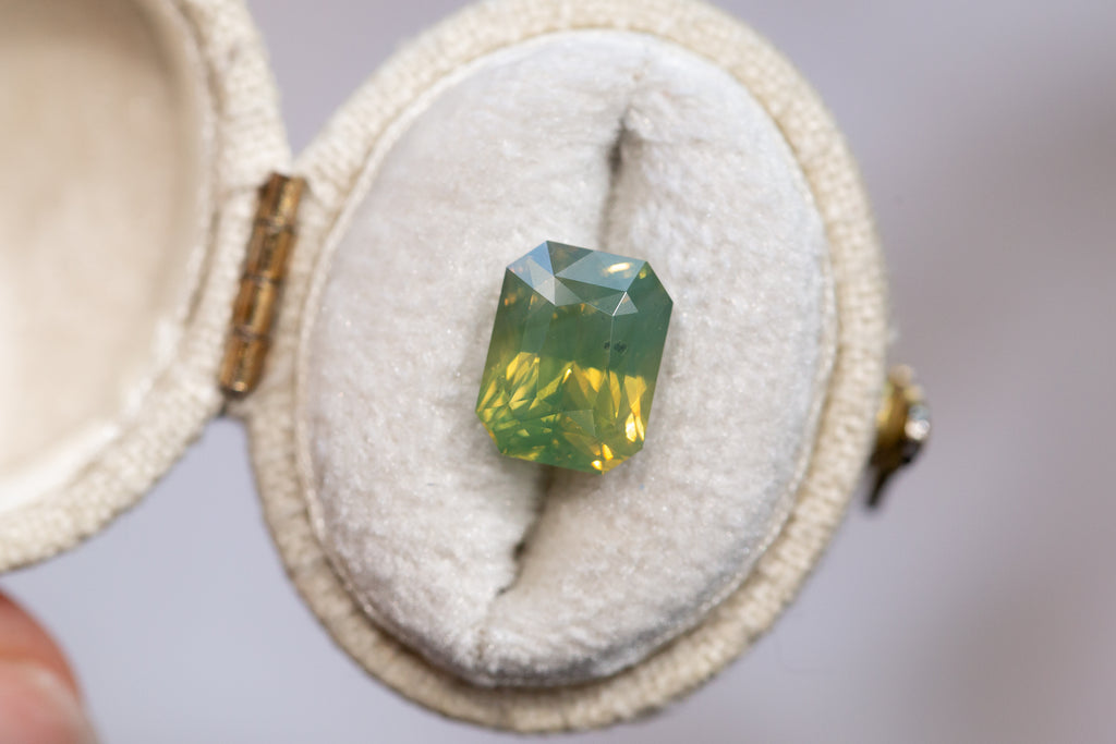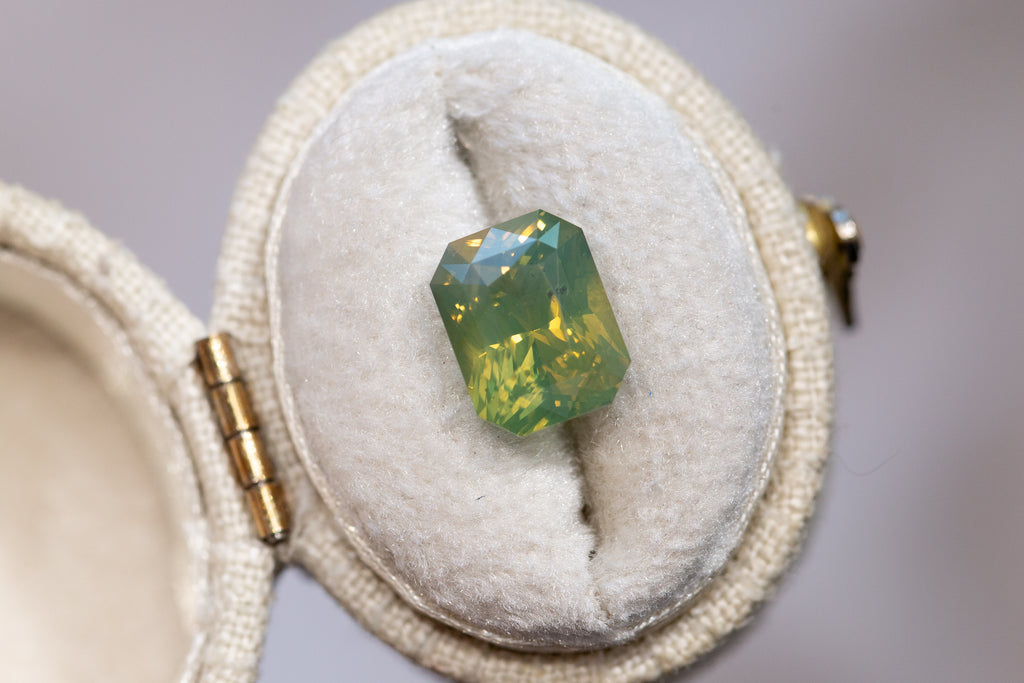 4.69ct Radiant Cute Opalescent Green Sapphire