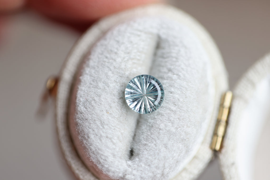 1.23ct round light blue sapphire, Starbrite cut by John Dyer