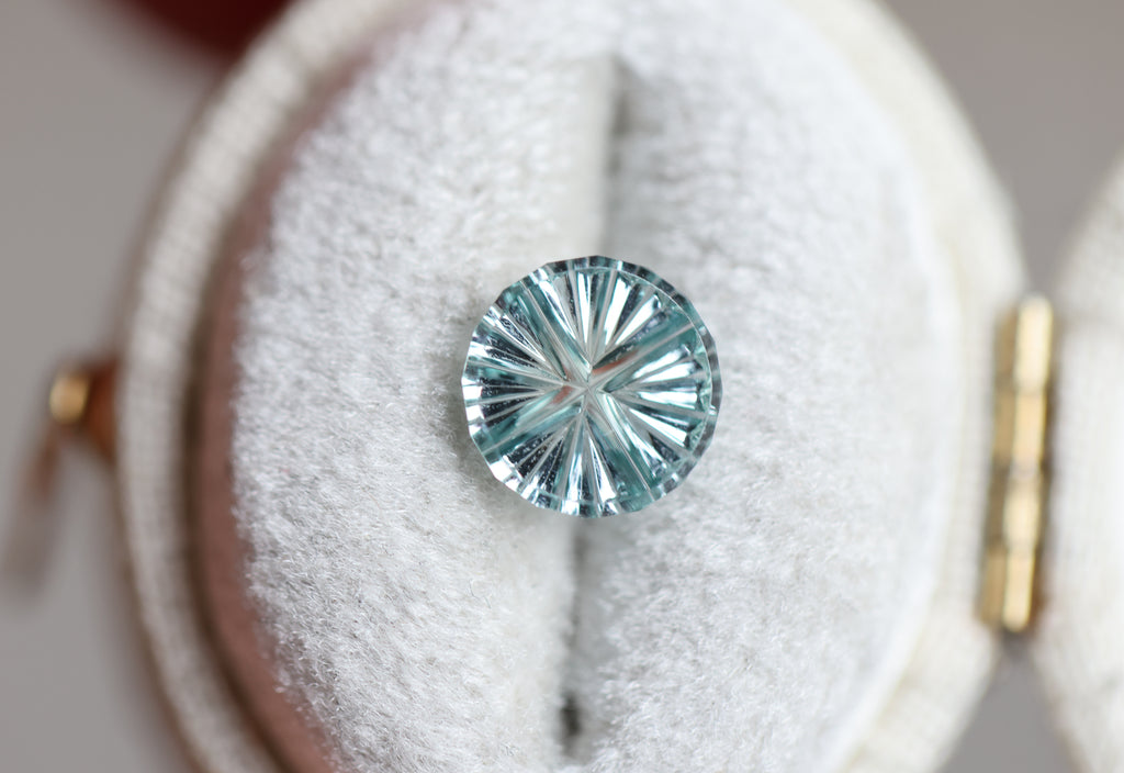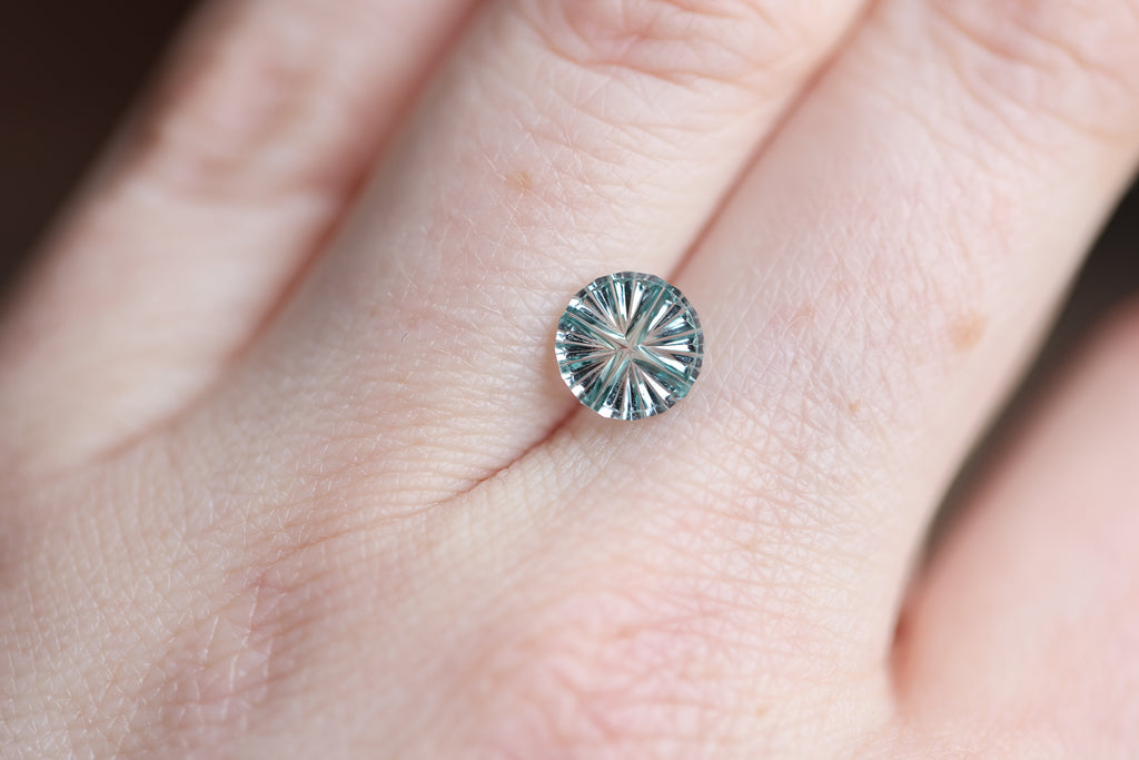 1.26ct round light blue green sapphire, Starbrite cut by John Dyer