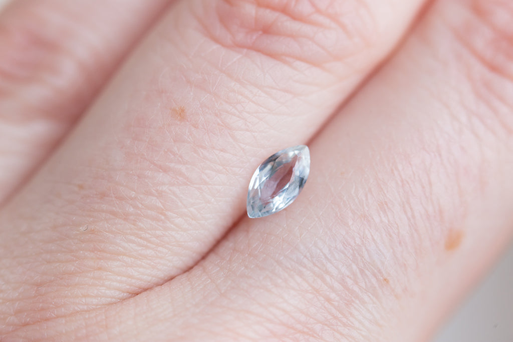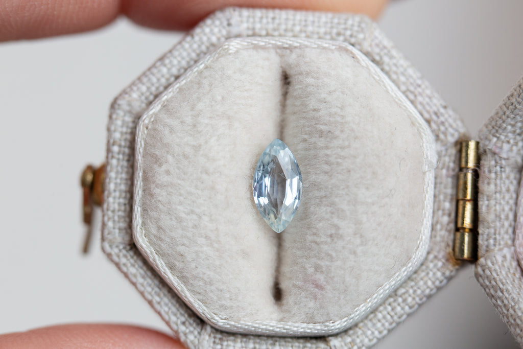 This beauty is a very, very pale blue marquise sapphire that is nearly white - such a lovely stone!