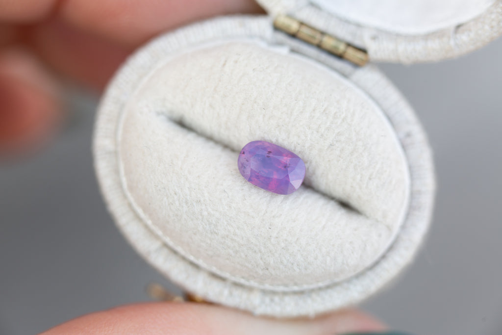 This incredibly unique opalescent purple pink sapphire has such vibrant colors combined with its milky opalescence it has a celestial goddess vibe to it! It's so magical and will make such a stunning one of a kind piece!