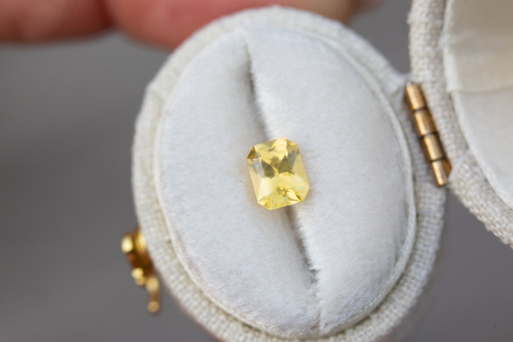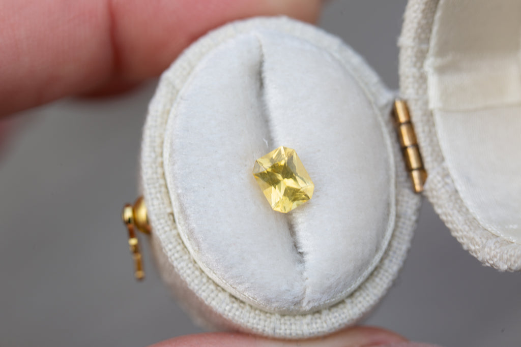 This stunning radiant cut yellow sapphire is so, so lovely! It has such summer goddess vibes!