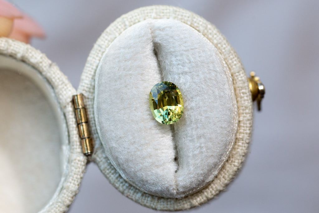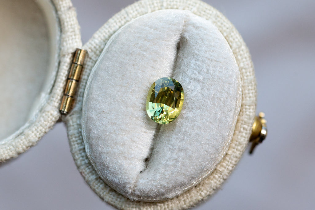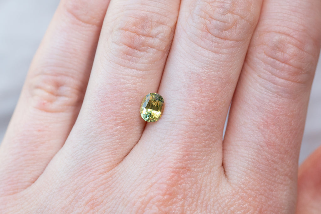 1.13ct Oval Yellowish Green and Teal Parti Sapphire