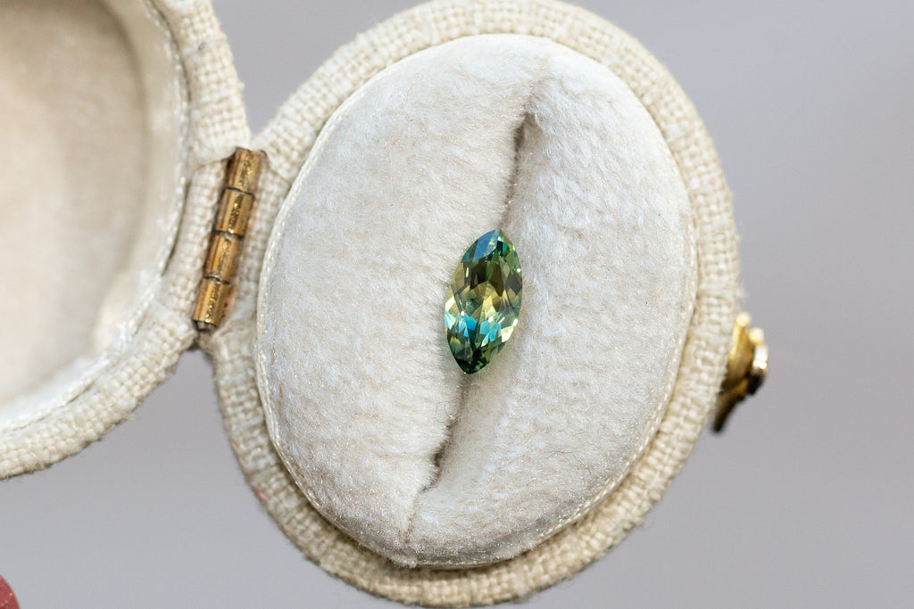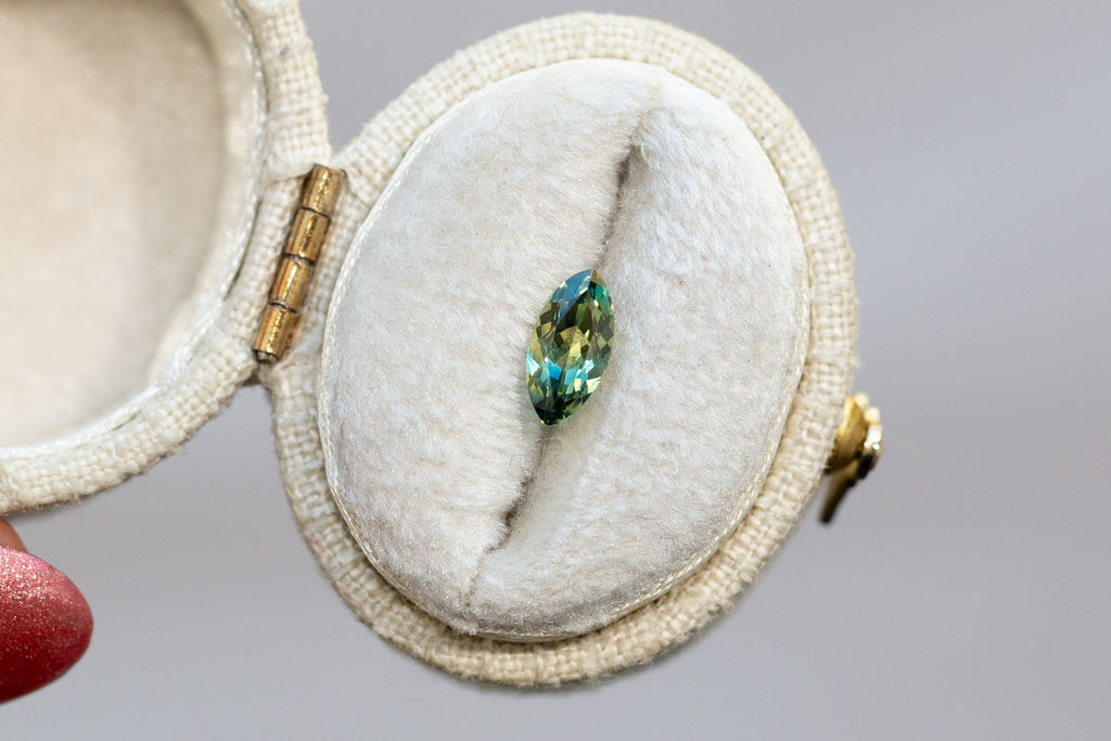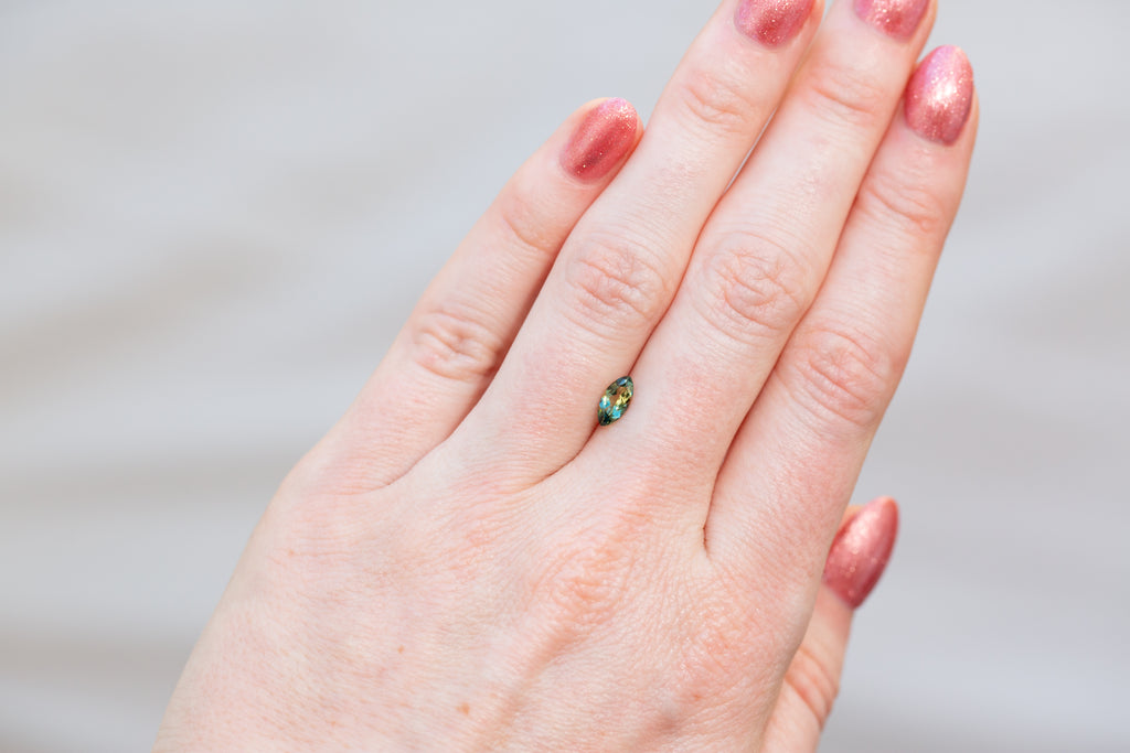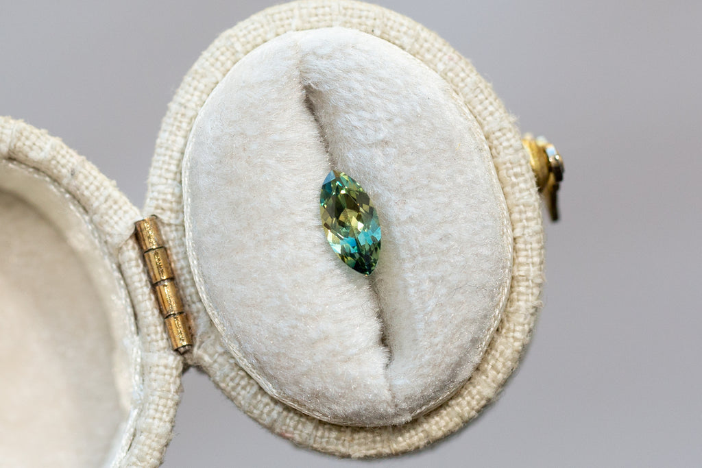 ON HOLD 0.71ct Marquise Blue Teal Yellow Sapphire