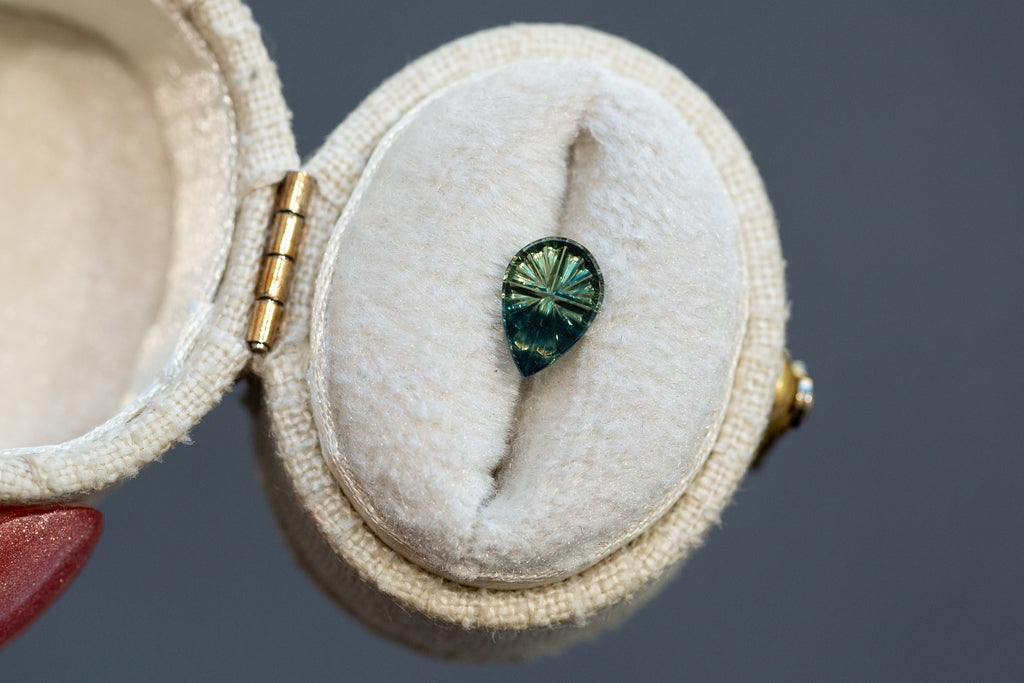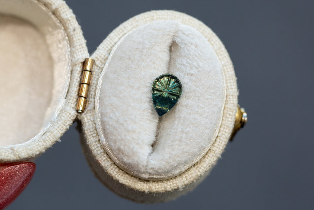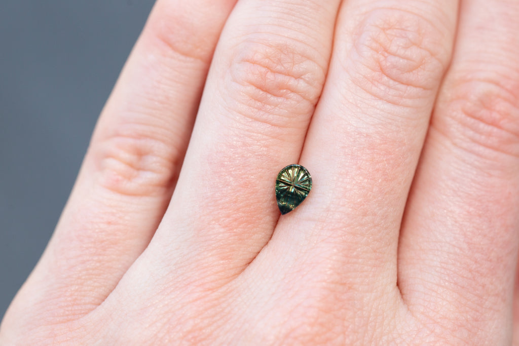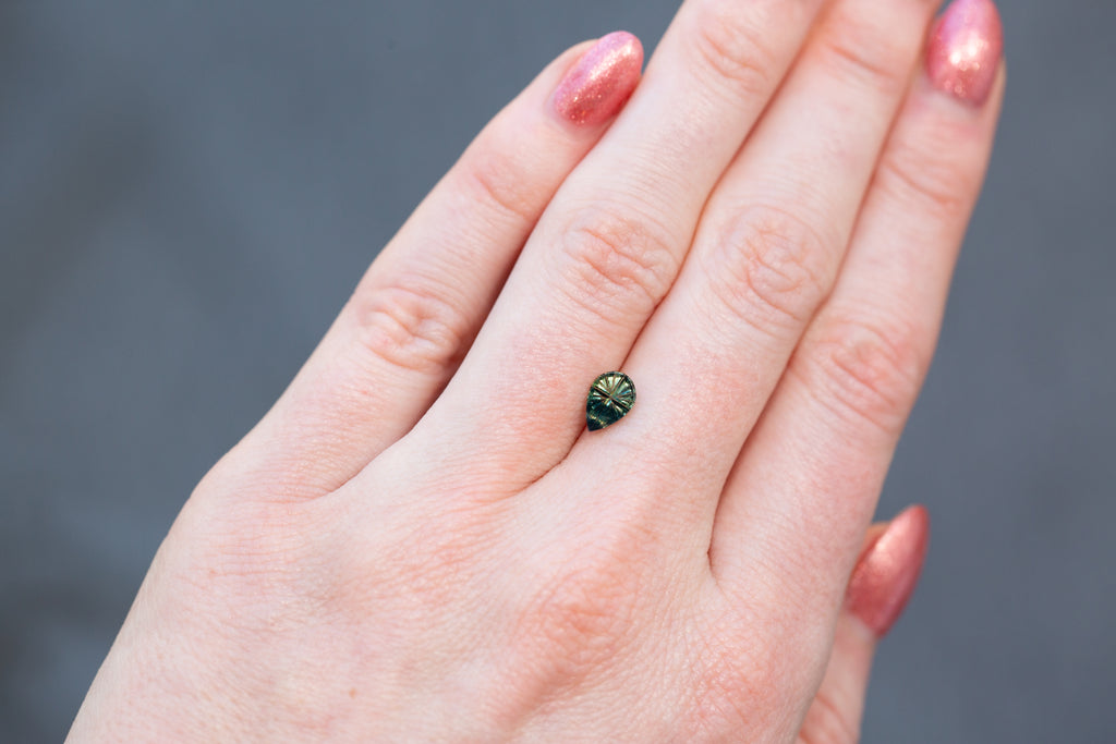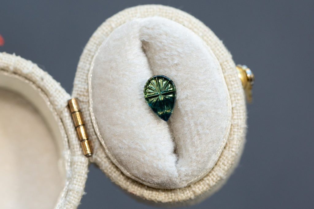 0.76ct Pear Deep Teal and Greenish Yellow Parti Sapphire - Starbrite Cut By John Dyer