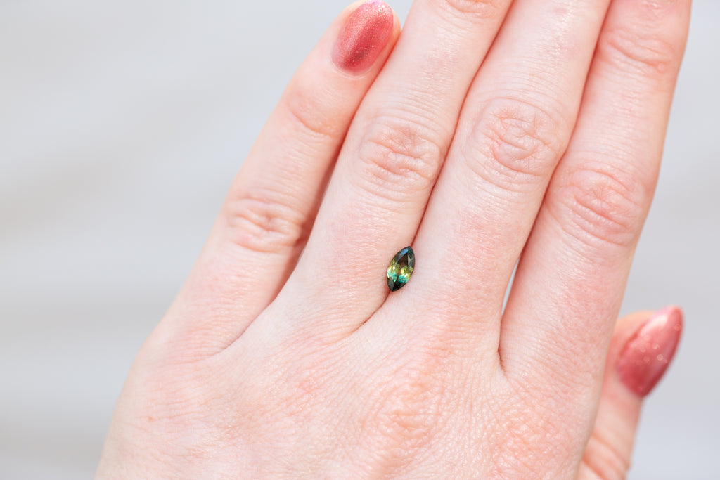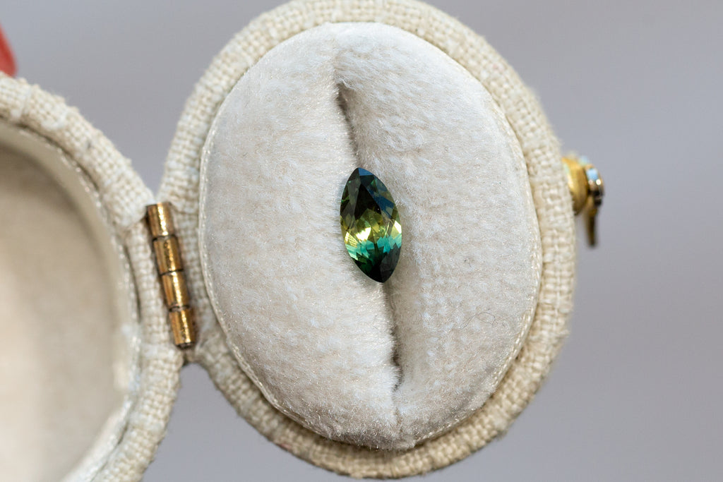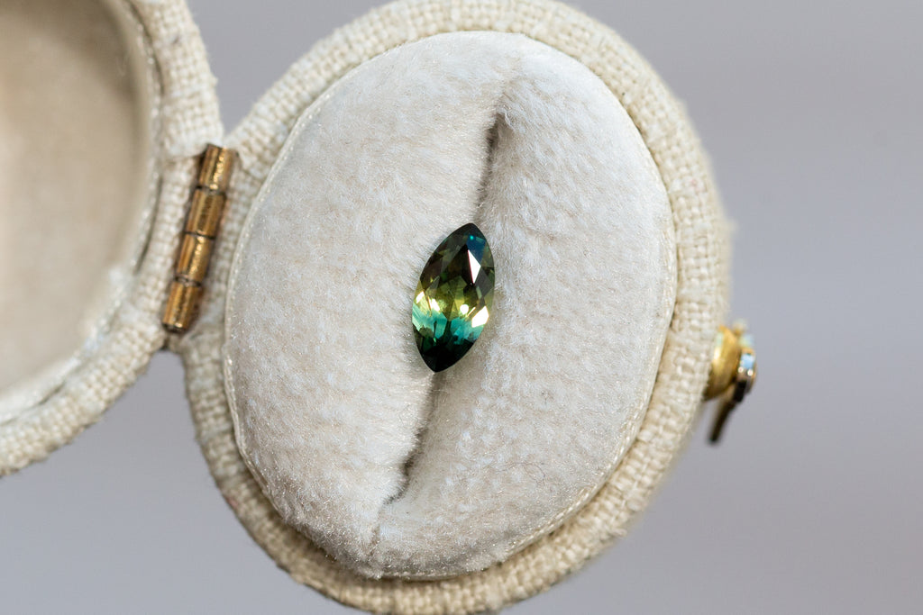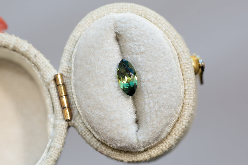 This sapphire is a vibrant teal green color that looks like it is lit from within by a rich yellow light! Just so lovely!