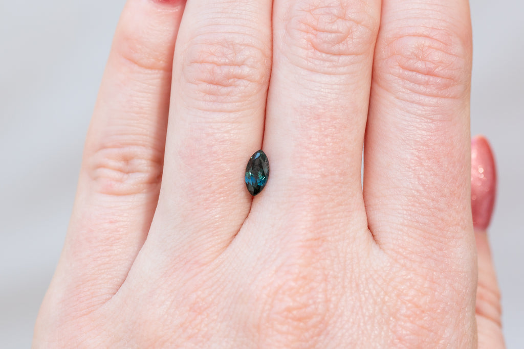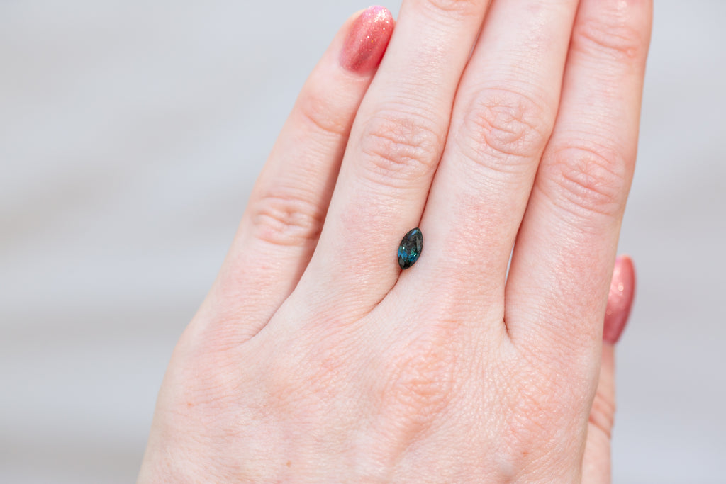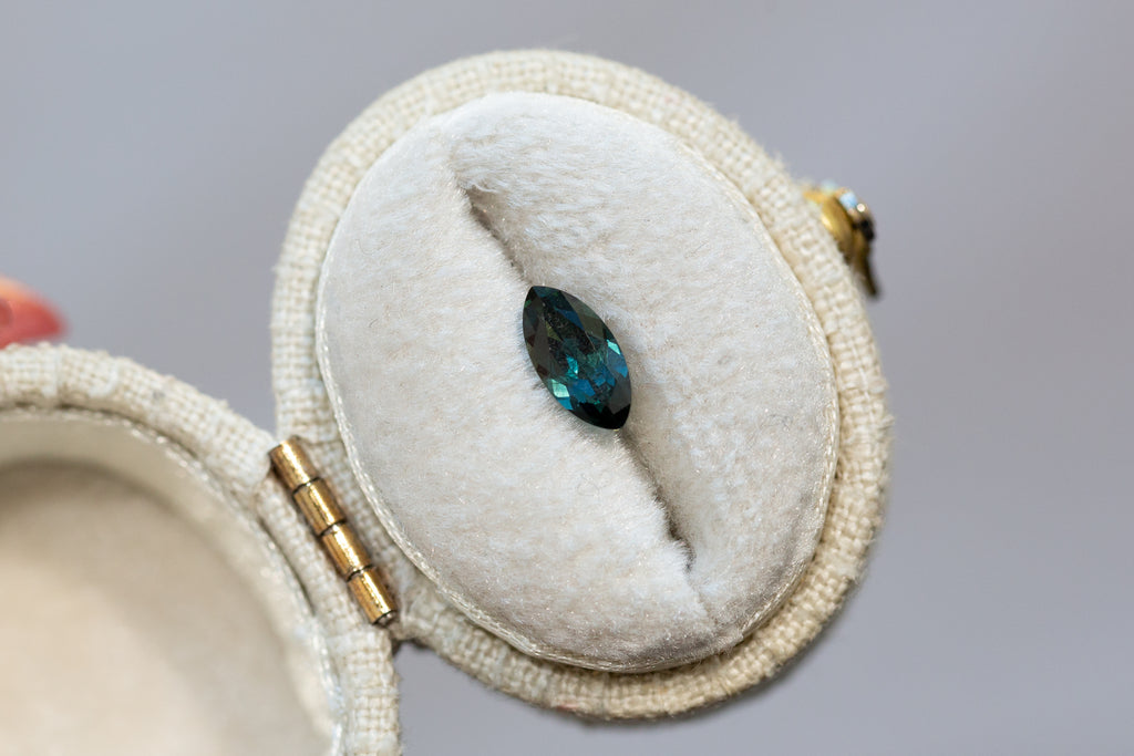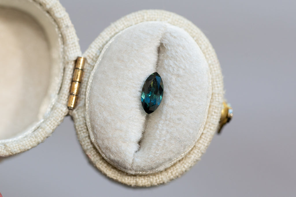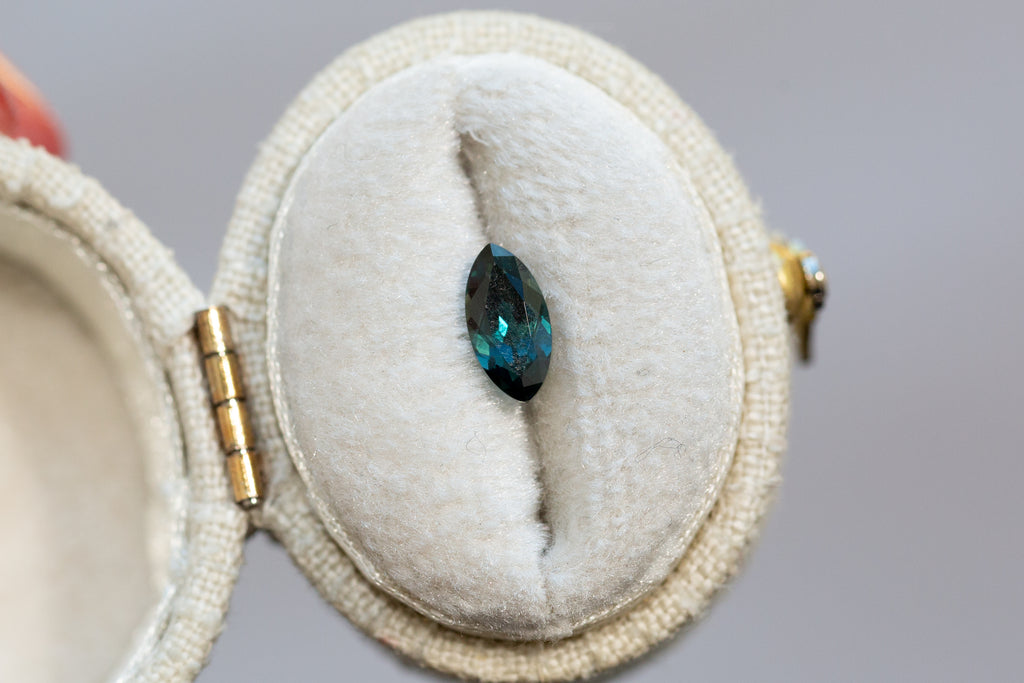 This moody teal gem has areas of a more opaque blue color that really make it special! Stunning!