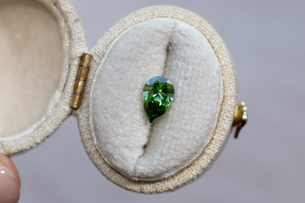 1.00ct Pear Fancy Vivid Green Lab Diamond, VVS2