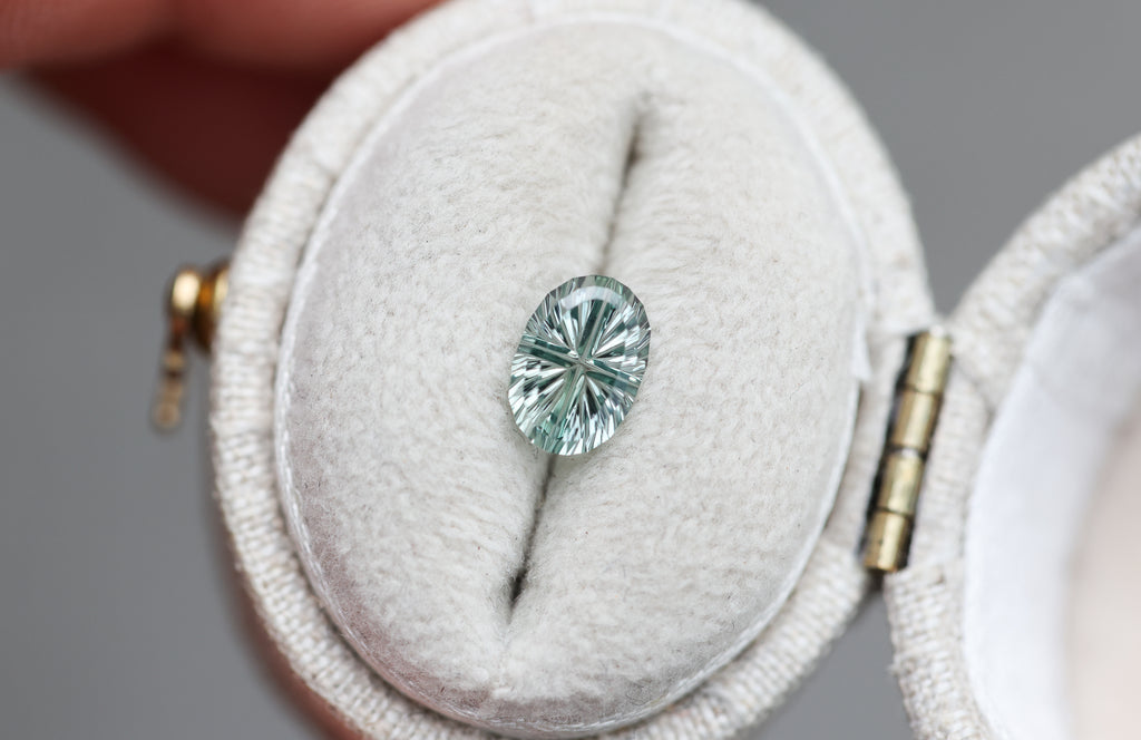 1.02ct oval light blue green sapphire, Starbrite cut by John Dyer