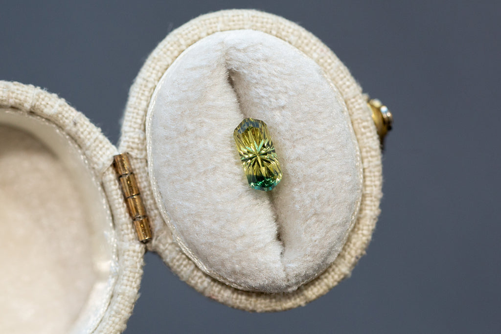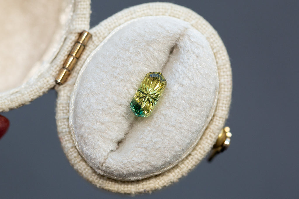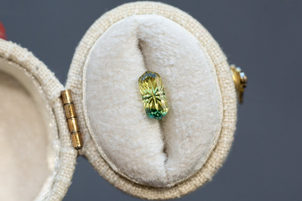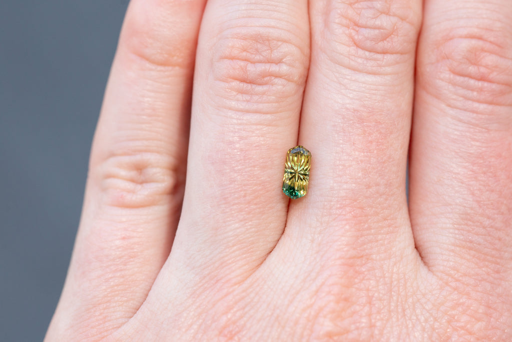1.14ct Elongated Hexagon Yellow Teal Parti Sapphire - Starbrite Cut By John Dyer