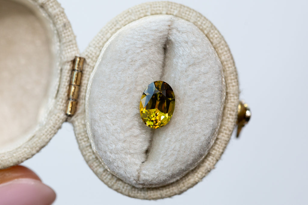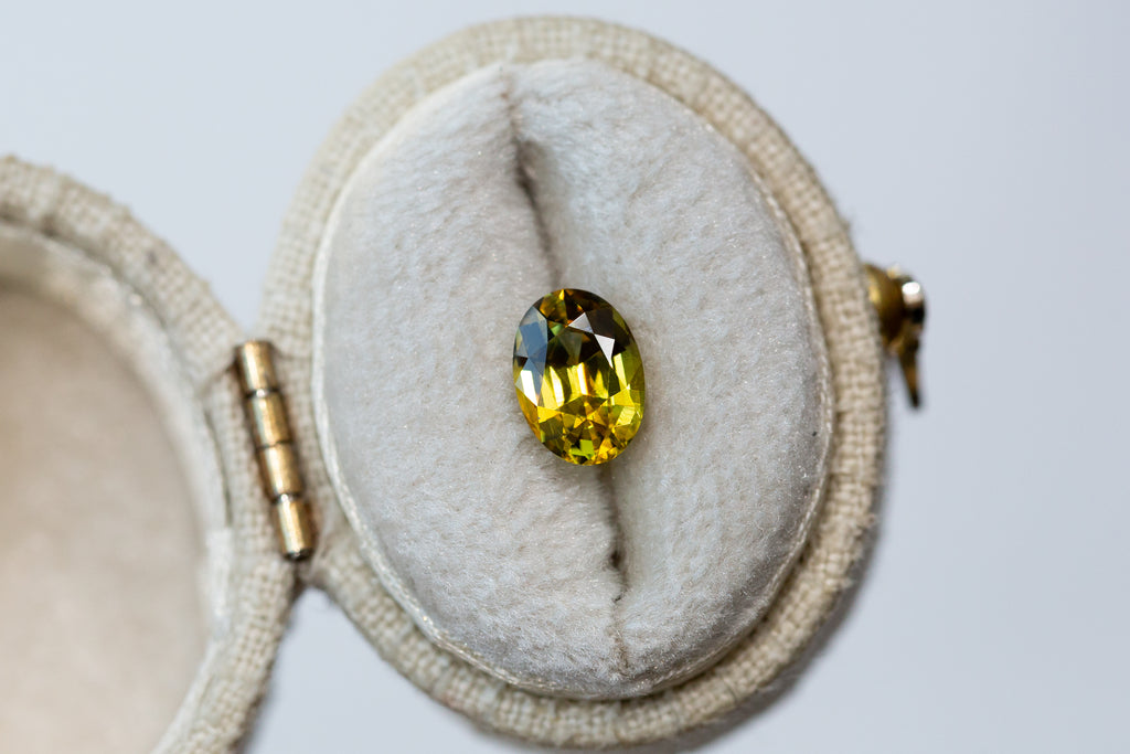 1.61ct Oval Orangey Yellow Green Sapphire