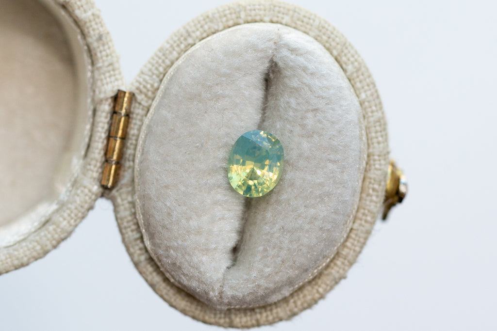 1.16ct Oval Opalescent Yellowish Teal Sapphire