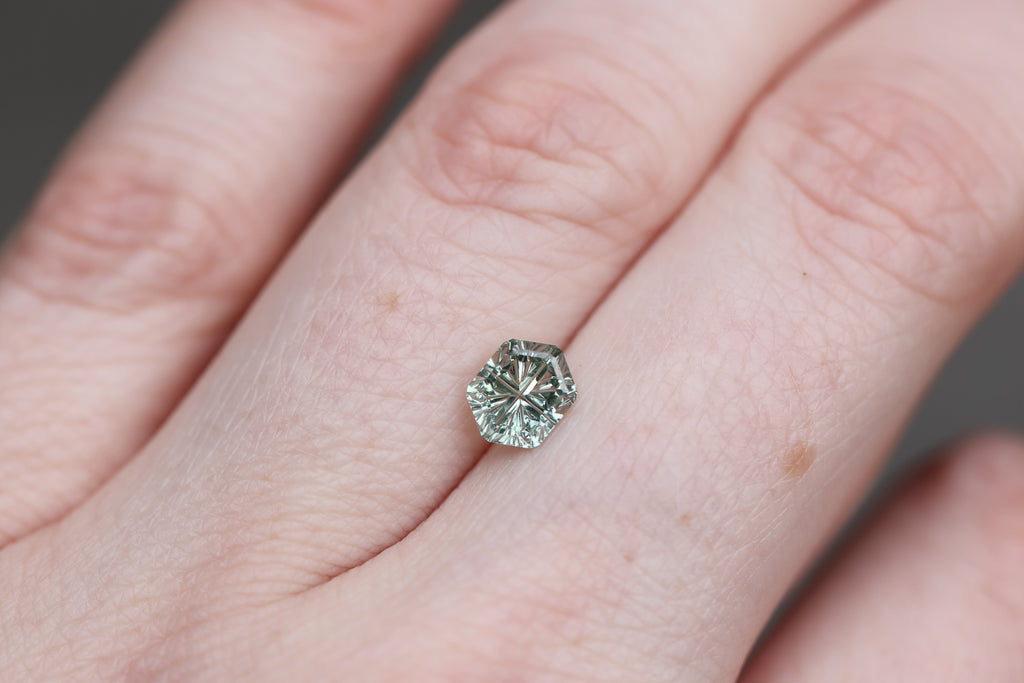 1.23ct hexagon light blue green sapphire, Starbrite cut by John Dyer