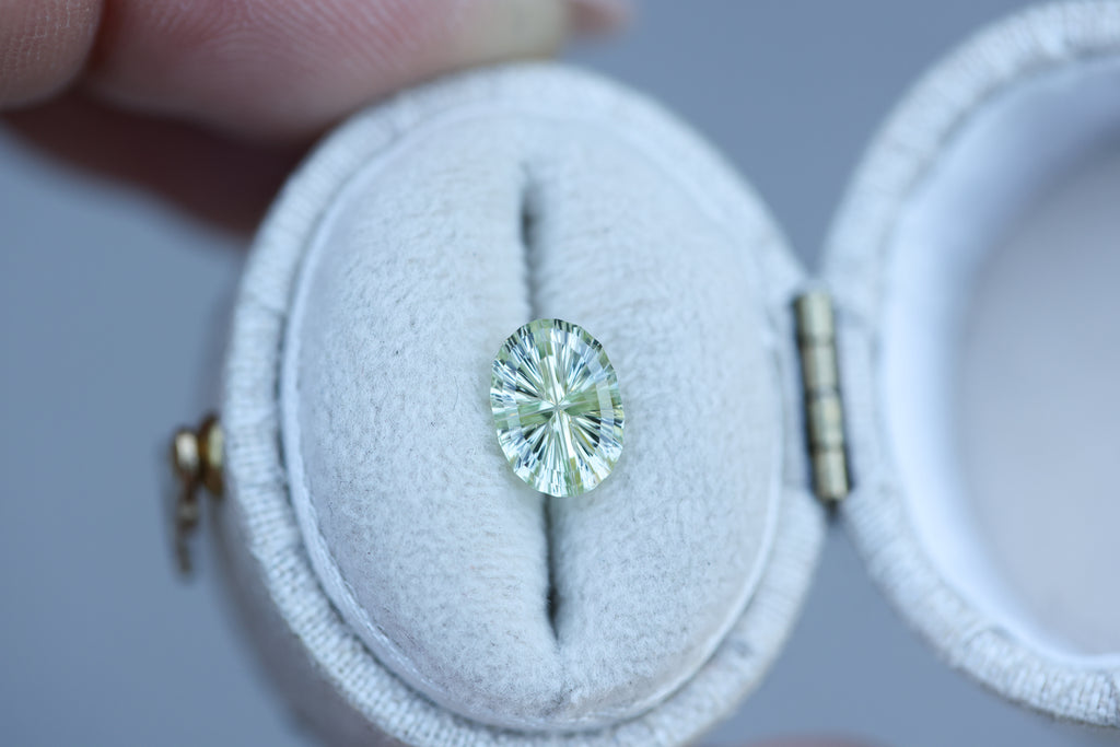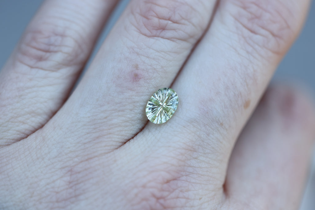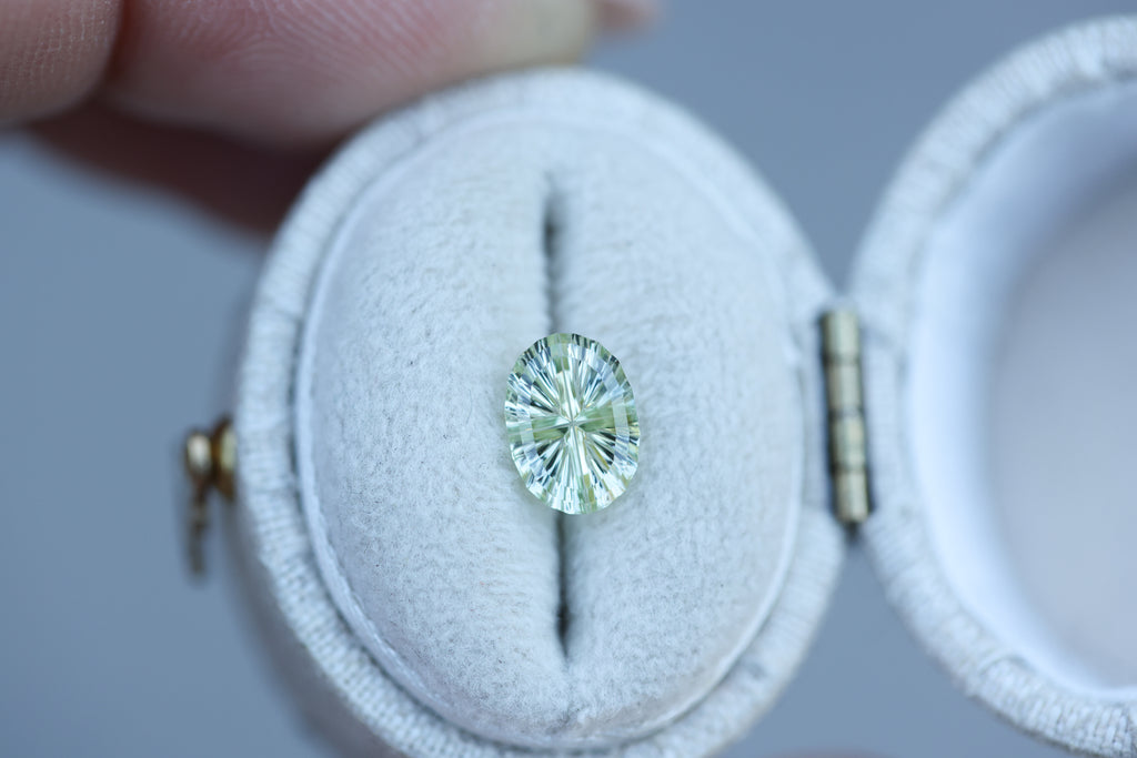 1.23ct oval light yellow green sapphire, Starbrite cut by John Dyer