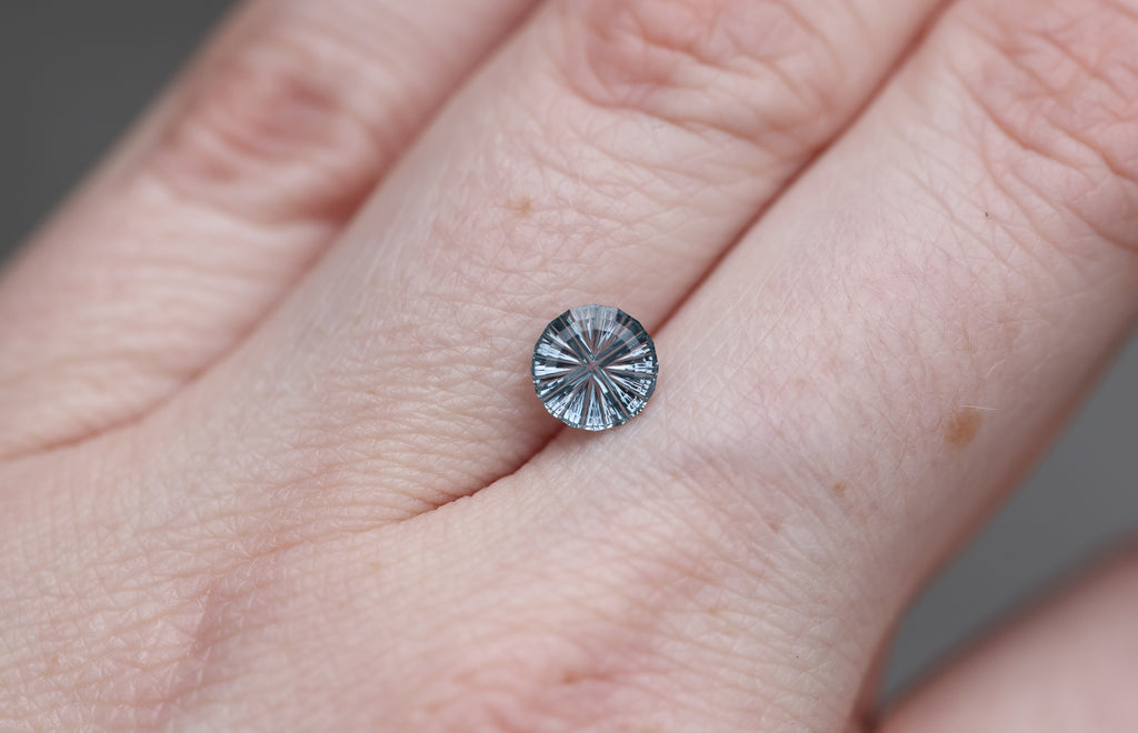 1.2ct round light blue sapphire, Starbrite cut by John Dyer