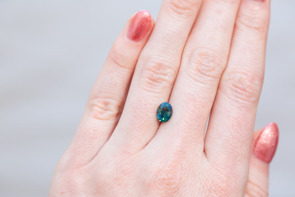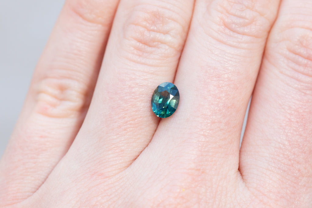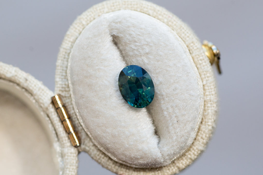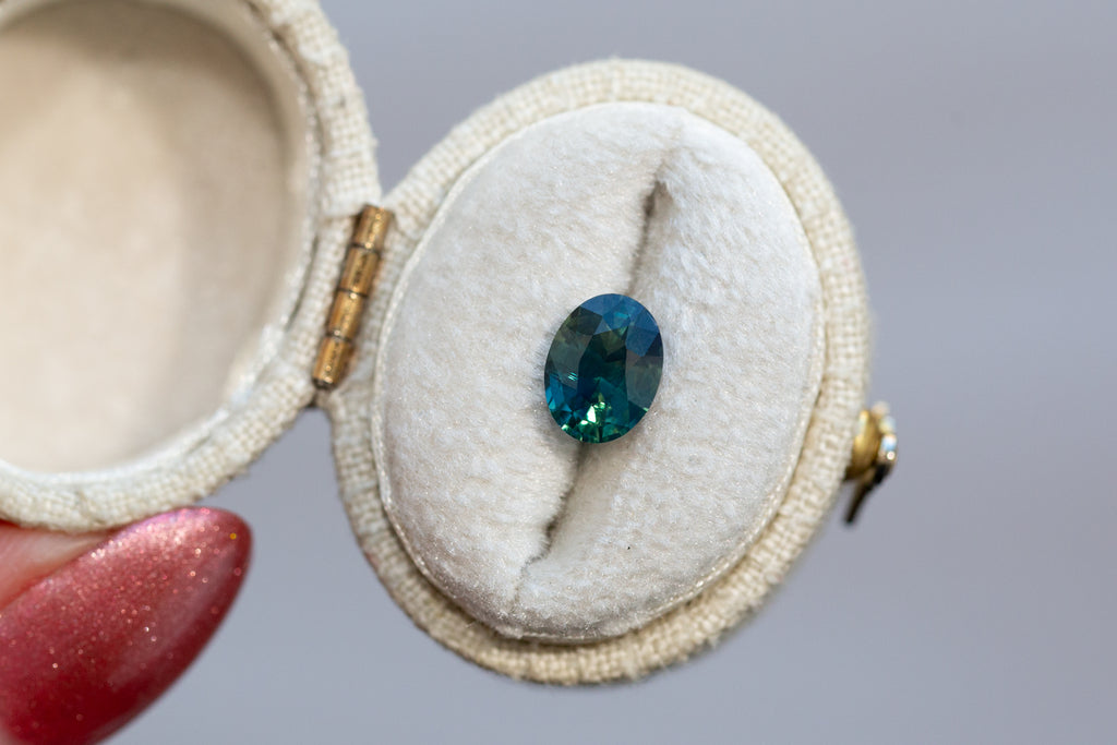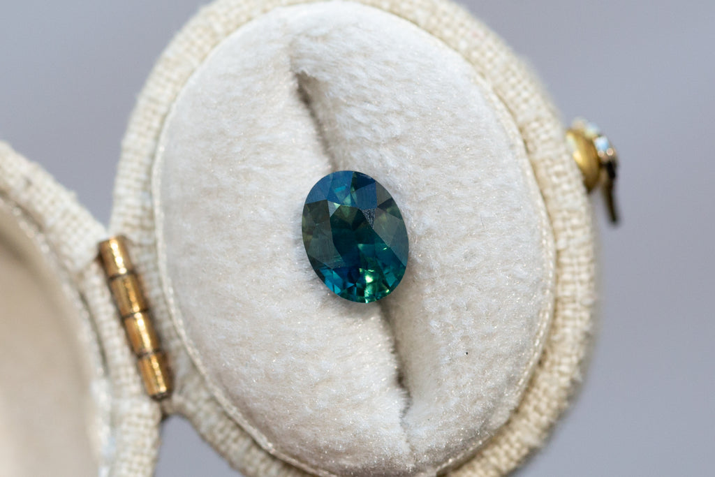 This unique stone is a gorgeous green with teal areas! It has some more opaque banding running through that is so pretty!