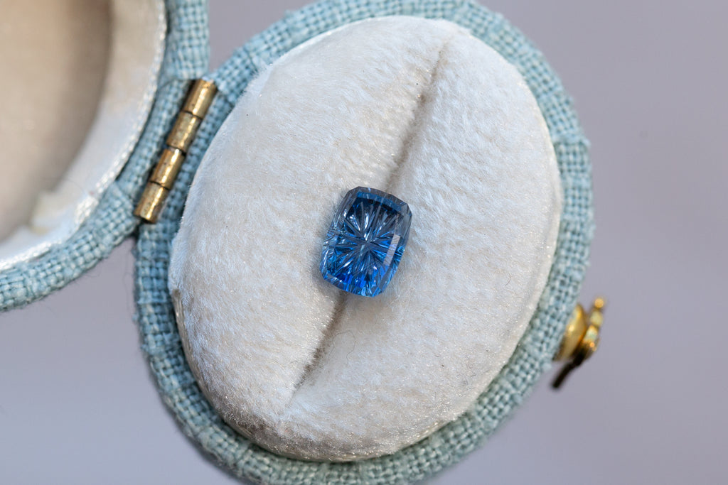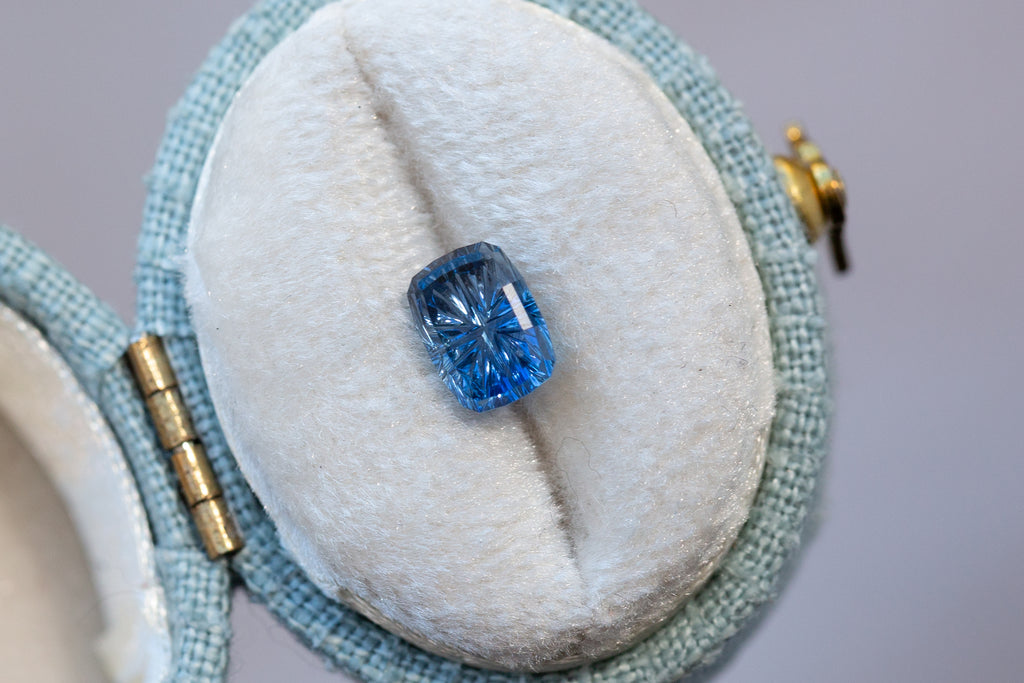 This vibrant blue stone is truly so dreamy! A Starbrite cut by award winning gem cutter, John Dyer!