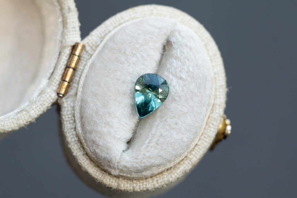 1.53ct Pear Bluish Green Teal Sapphire
