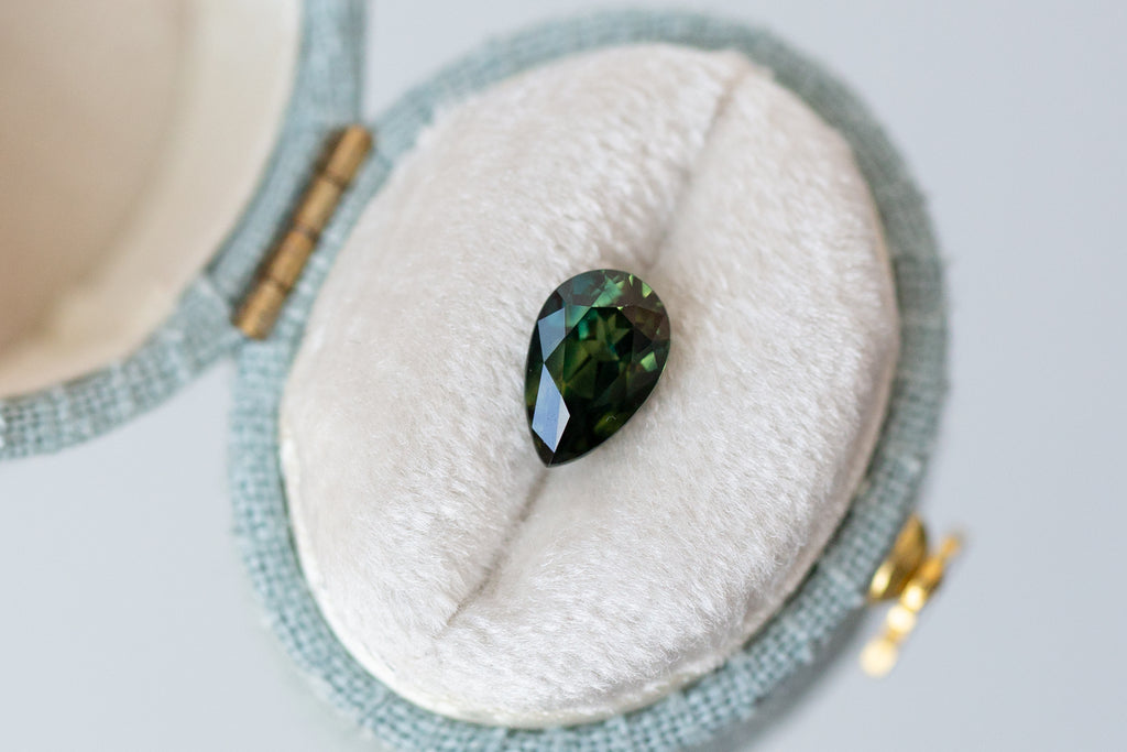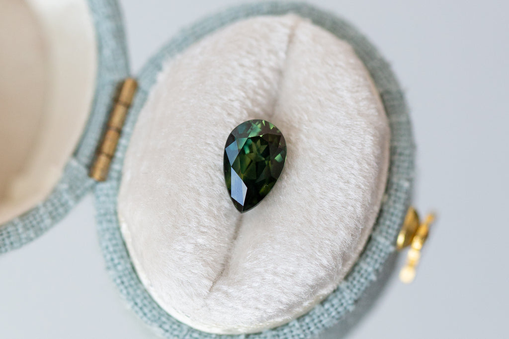 1.55ct Pear Deep Green Teal Sapphire