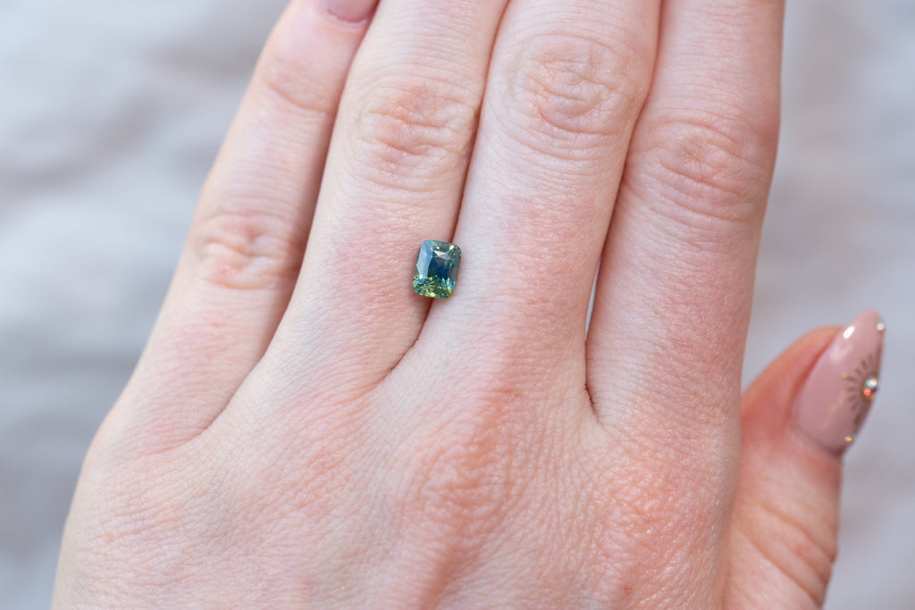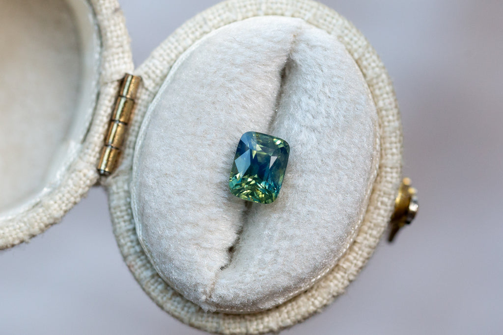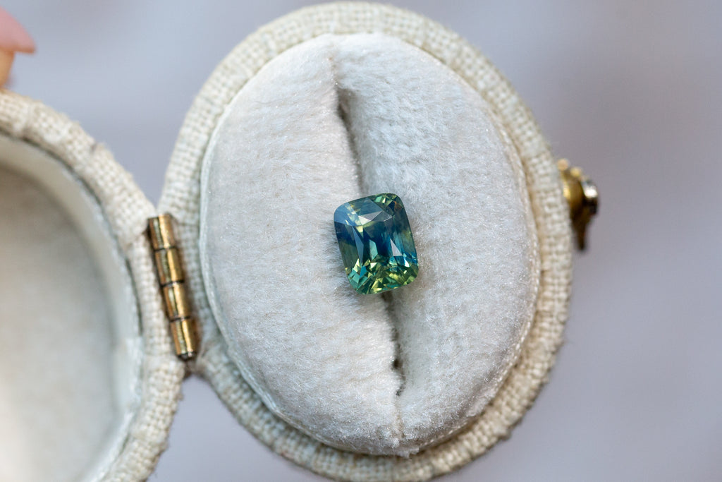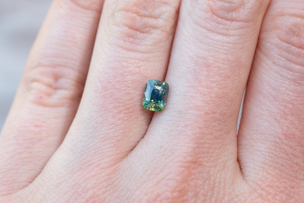 1.52ct Cushion Opalescent Aqua and Green Parti Sapphire