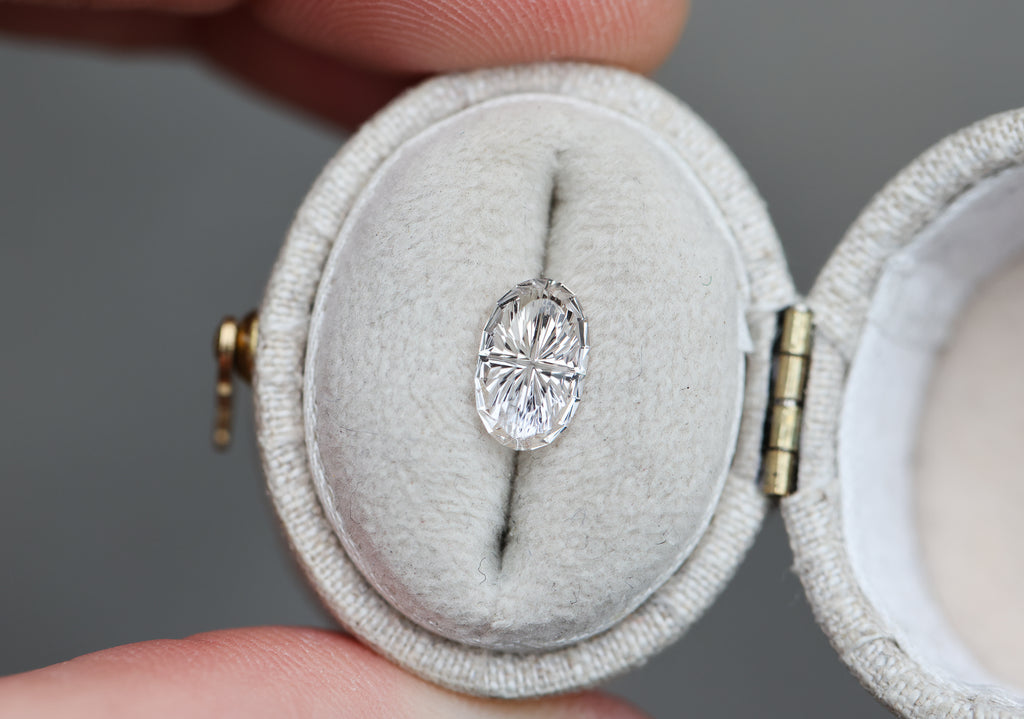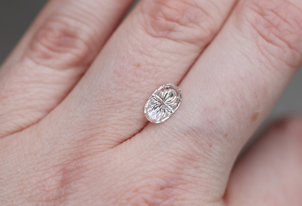 1.56ct oval white sapphire, Starbrite cut by John Dyer