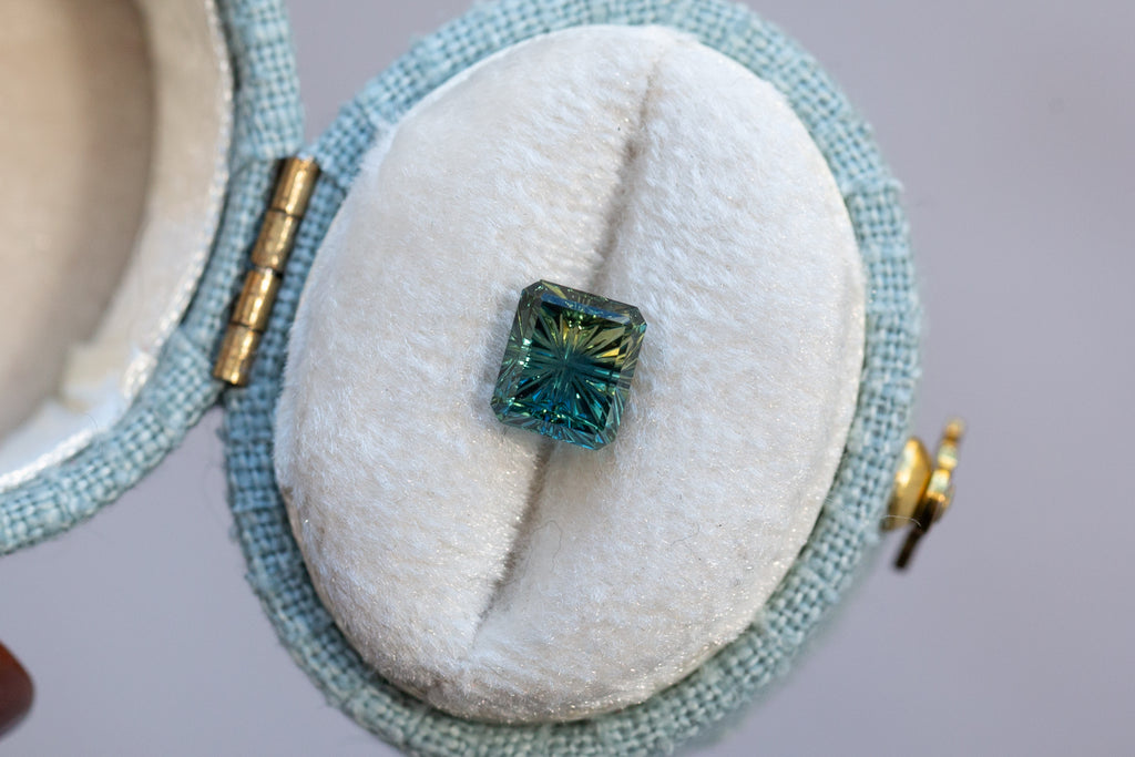 1.48ct Rectangle Teal Yellow Parti Sapphire, Starbrite Cut by John Dyer