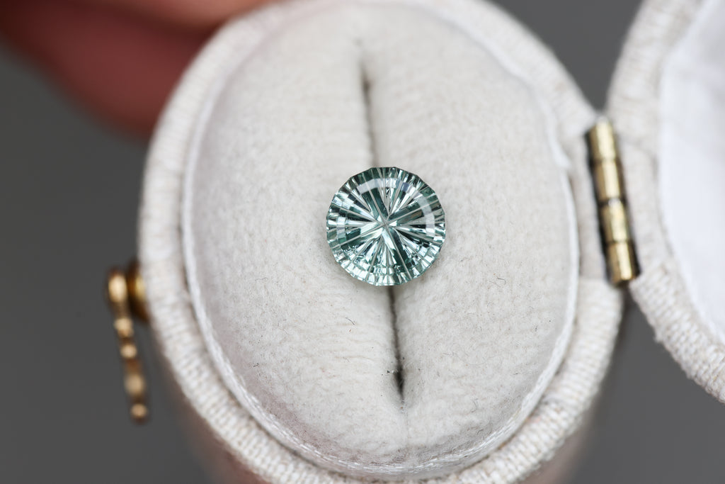 1.64ct round blue green sapphire, Starbrite cut by John Dyer