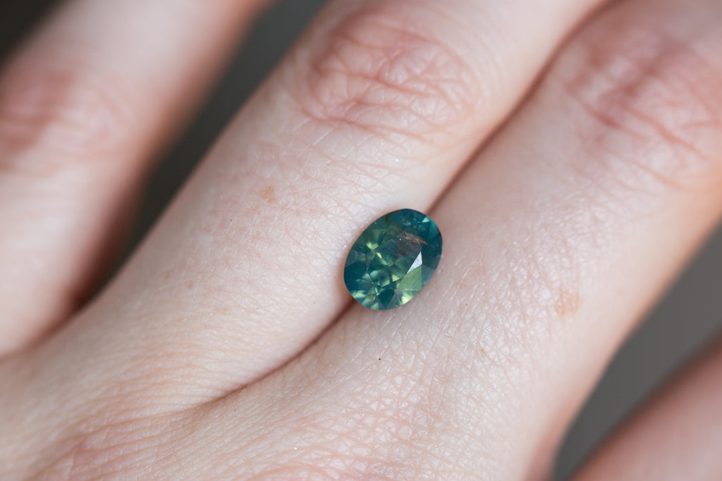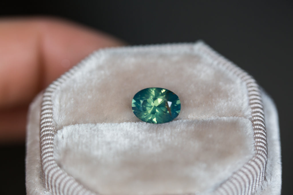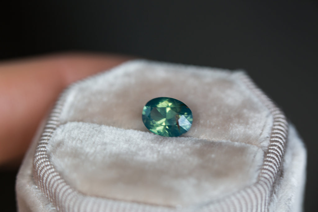 -This stone is a stunning bright teal color, opalescent with a slice of an orange inclusion. This color is so, so rare. It does have a small surface inclusion on the side of the stone, so while not visible from the top it is there so the stone is slightly discounted.