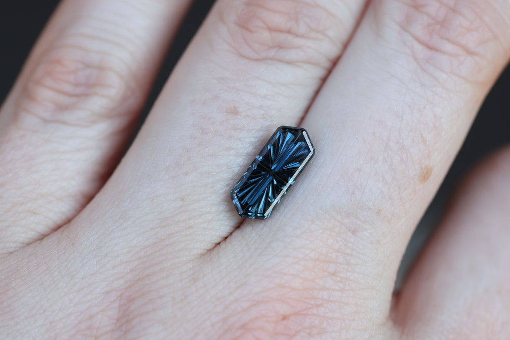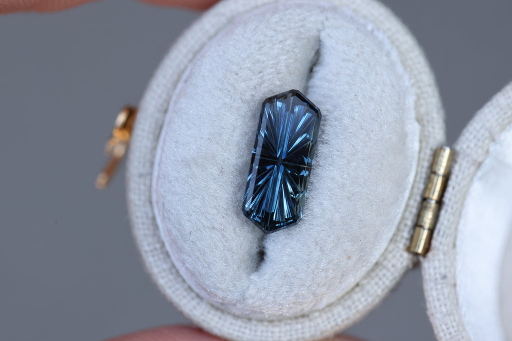 2.28ct elongated hexagon blue sapphire, Starbrite cut by John Dyer