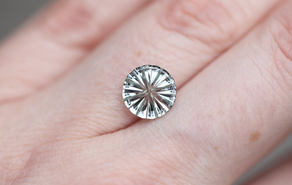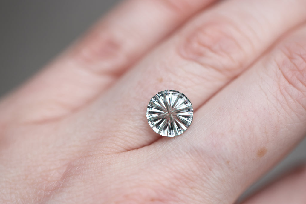 2.39ct round white sapphire, Starbrite cut by John Dyer
