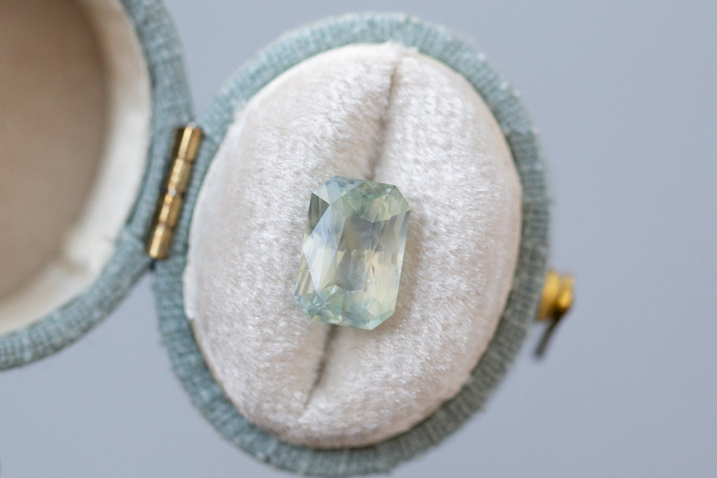 3.95ct Radiant Opalescent Pale Sea Green Sapphire