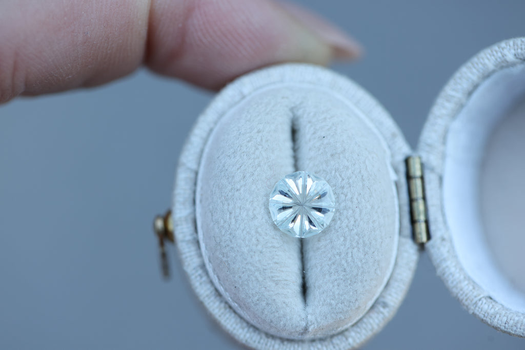 .88ct round white sapphire, Starbrite cut by John Dyer
