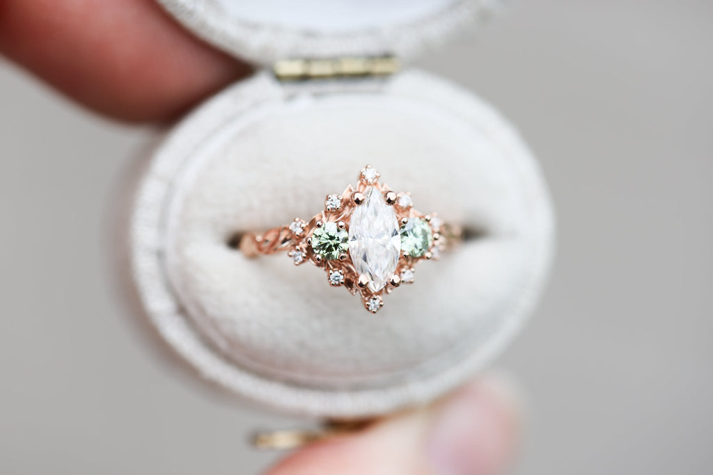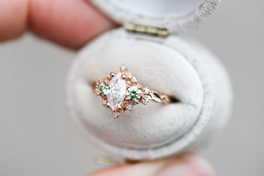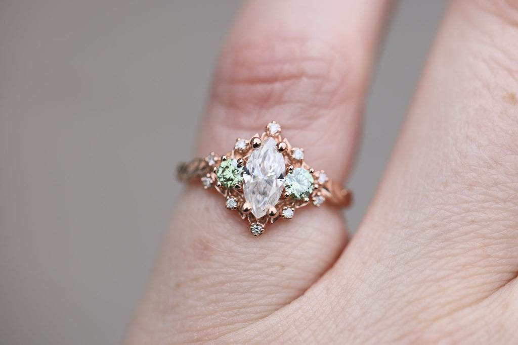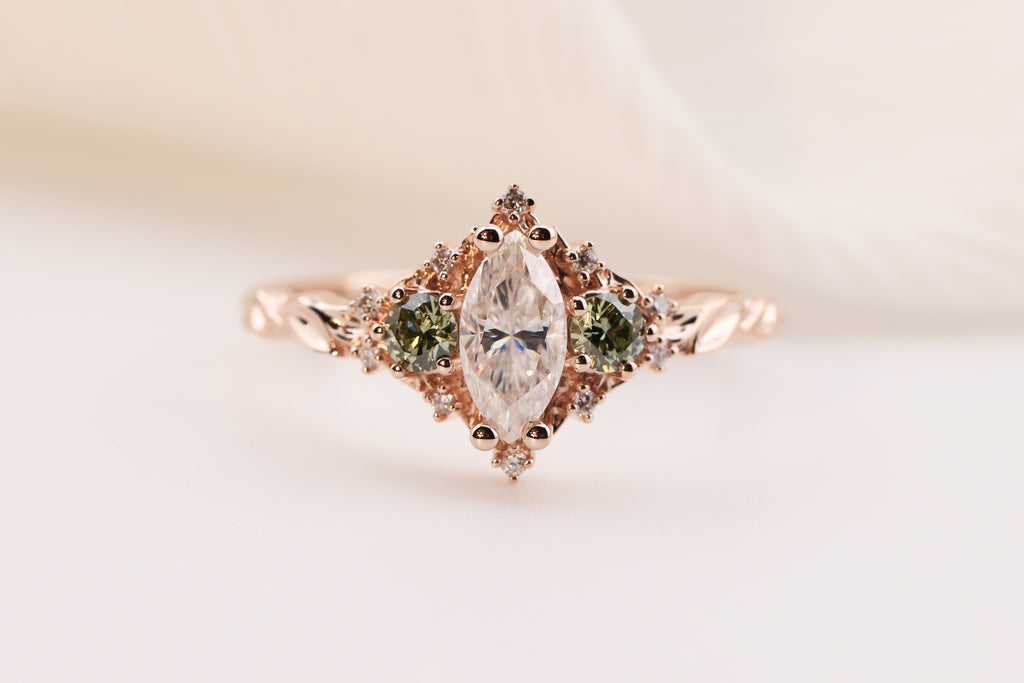Customize your own Briar Rose Three Stone with marquise center and round sides