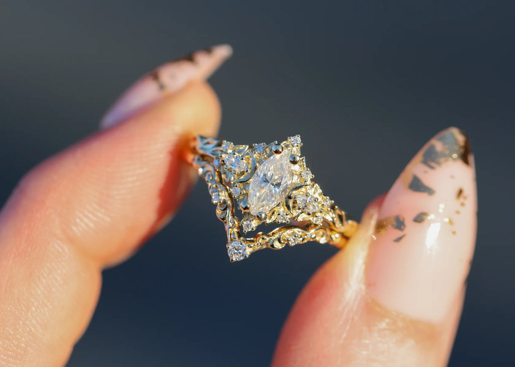 Customize your own Briar Moon Three Stone with 8x4mm marquise center