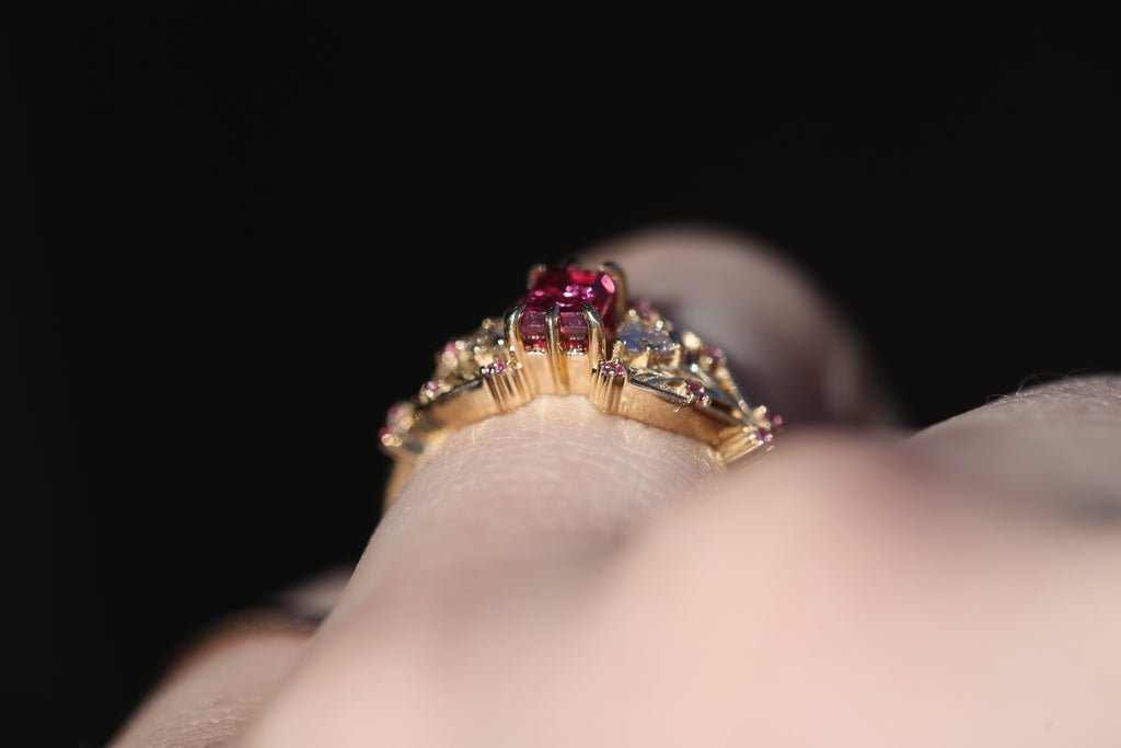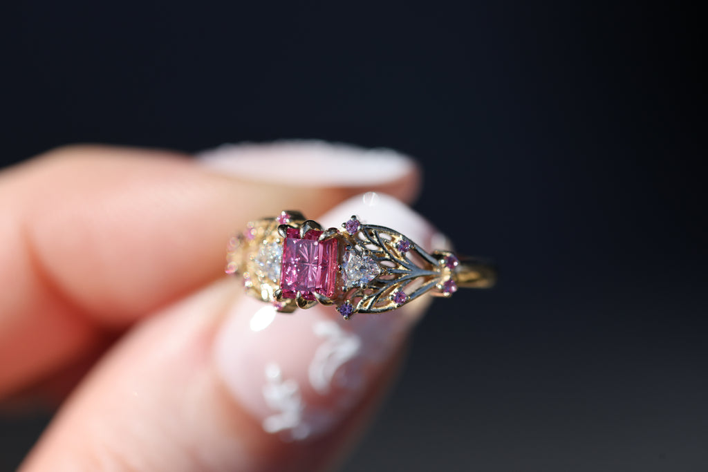 **if you are smaller than a size 6 or if your center stone is large I would consider removing the last two accent stones to avoid them rubbing between your finger. Please feel free to reach out if you are unsure if this applies to you!