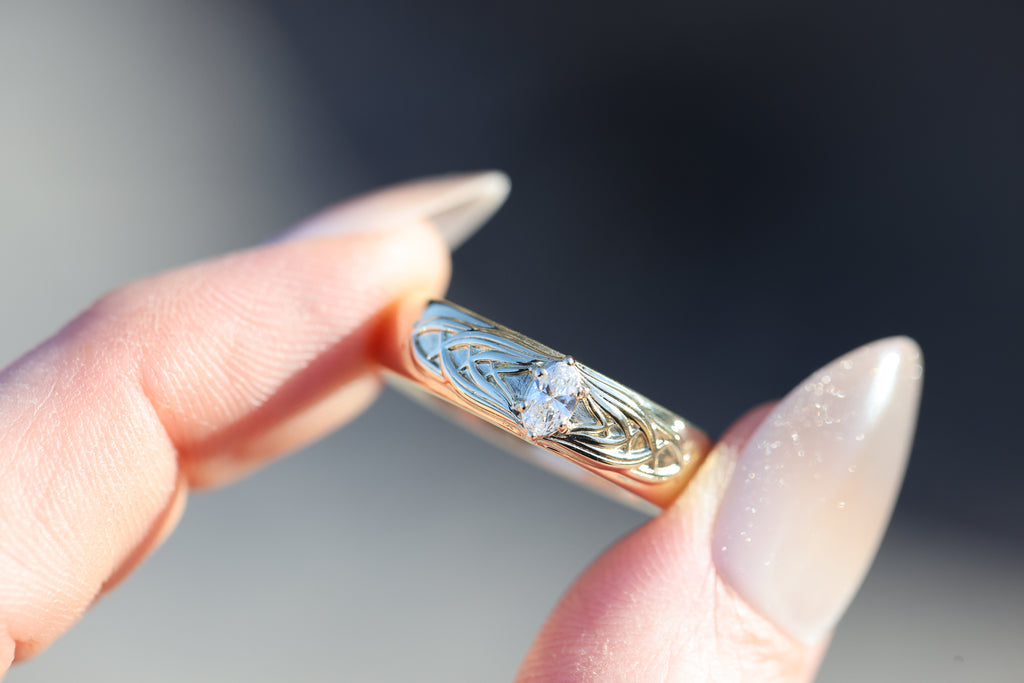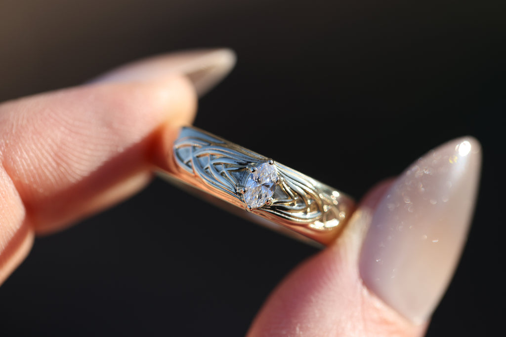 - Cast in your choice of solid 14k gold, 18k gold, or platinum