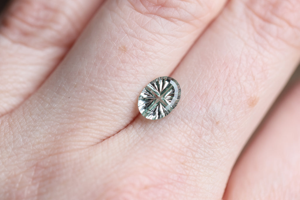 1.4ct oval medium blue green sapphire, Starbrite cut by John Dyer