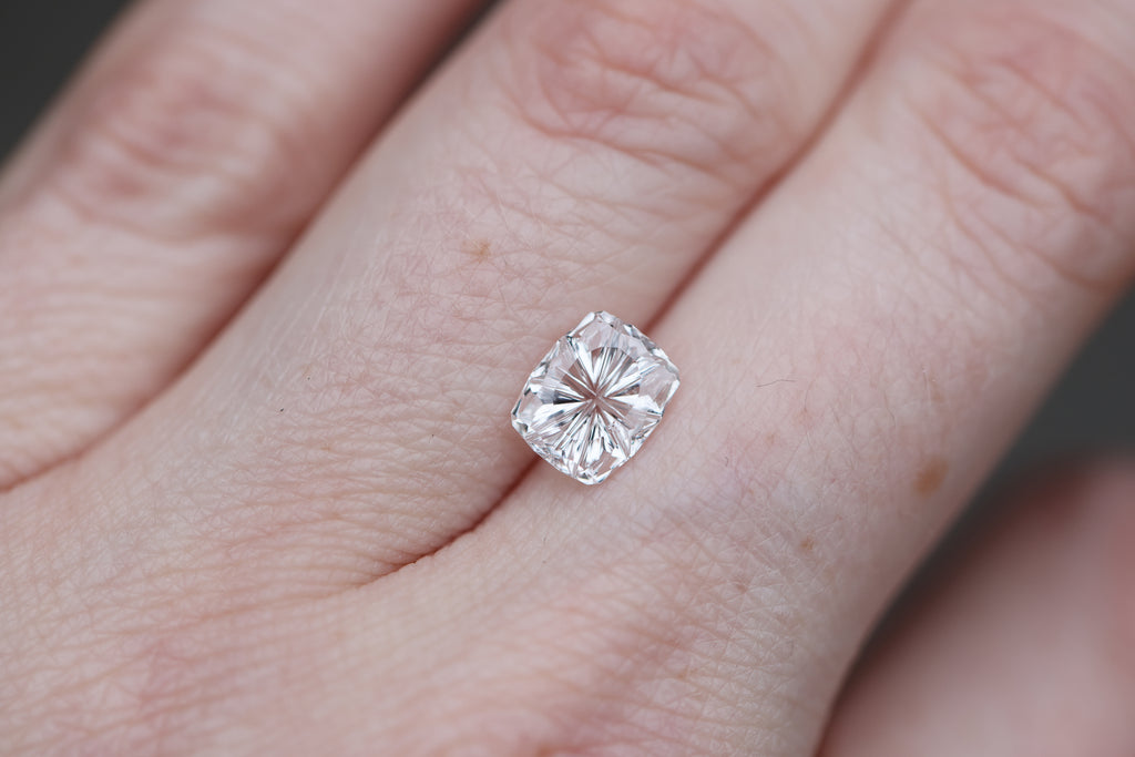 1.68ct cushion light peach white sapphire, Starbrite cut by John Dyer