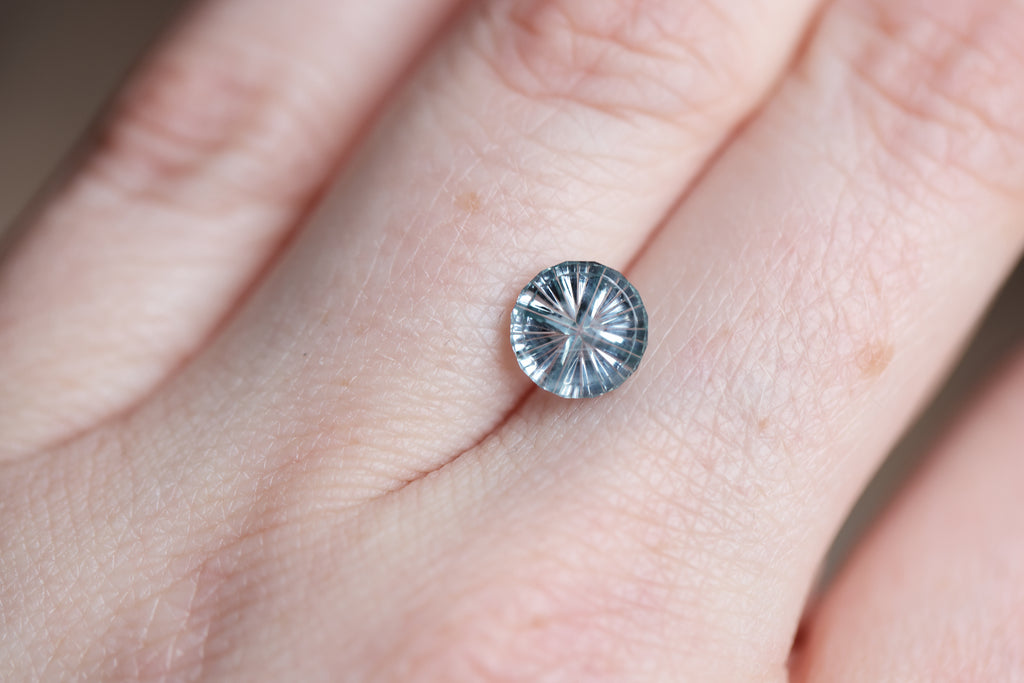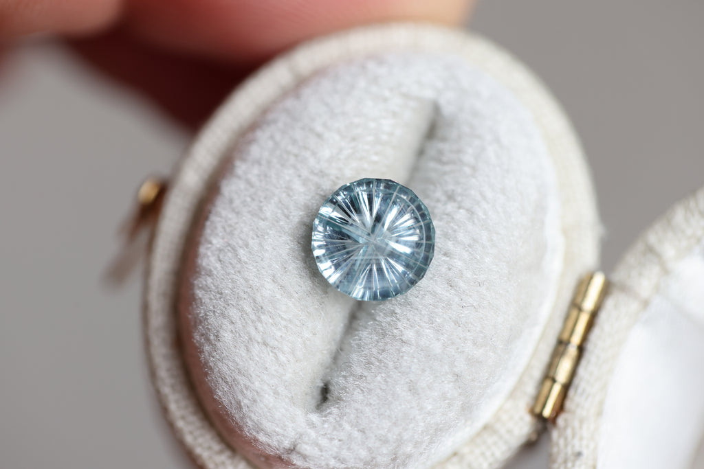 1.7ct round blue sapphire, Starbrite cut by John Dyer