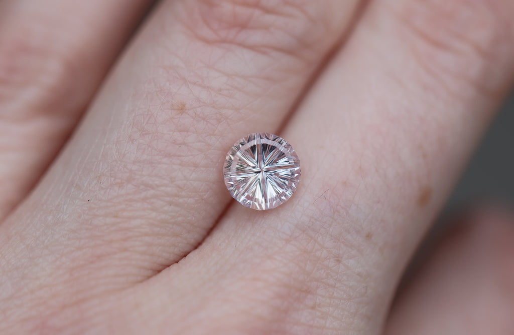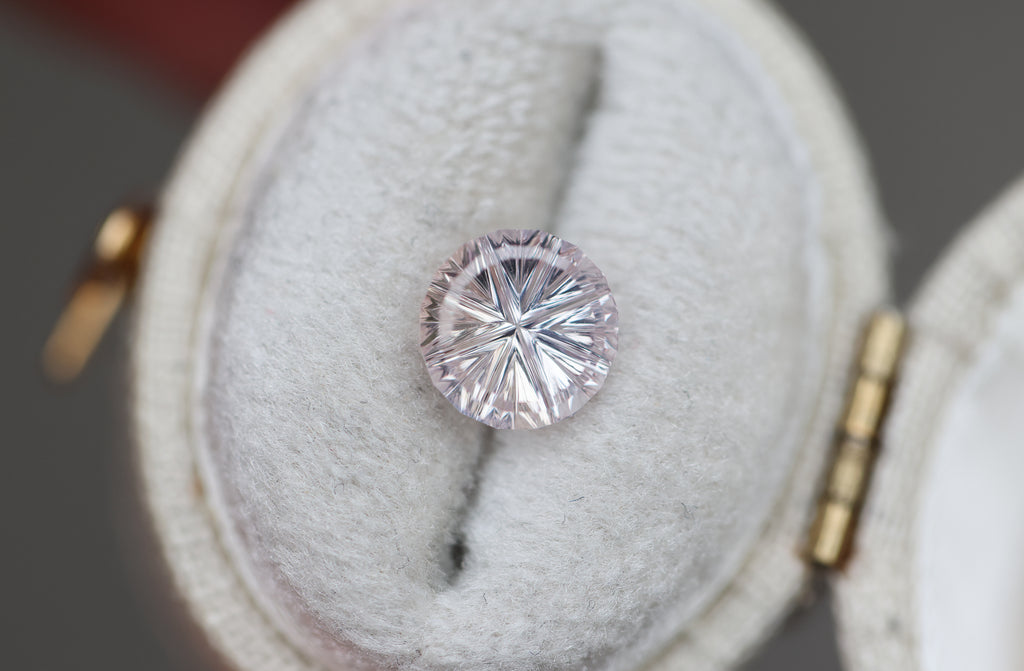 2.12ct round light pink peach sapphire, Starbrite cut by John Dyer