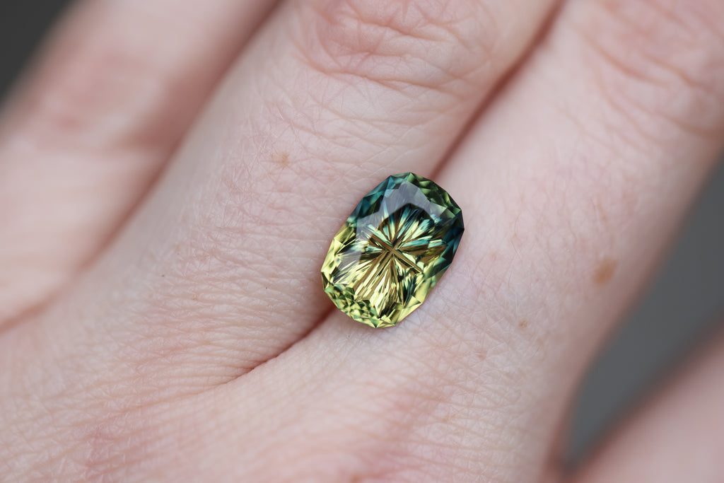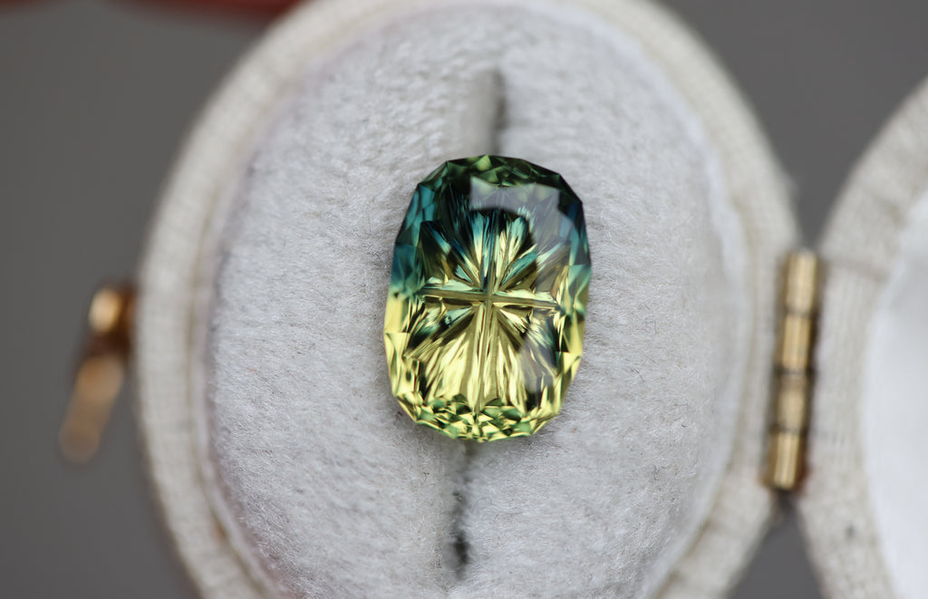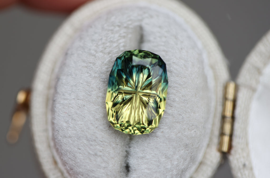 3.94ct cushion parti sapphire, Starbrite cut by John Dyer