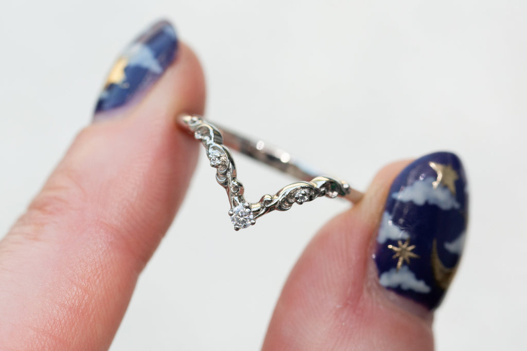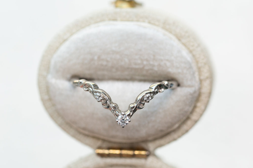 READY TO SHIP- Size 6.75, platinum Curved Filigree Wedding Band