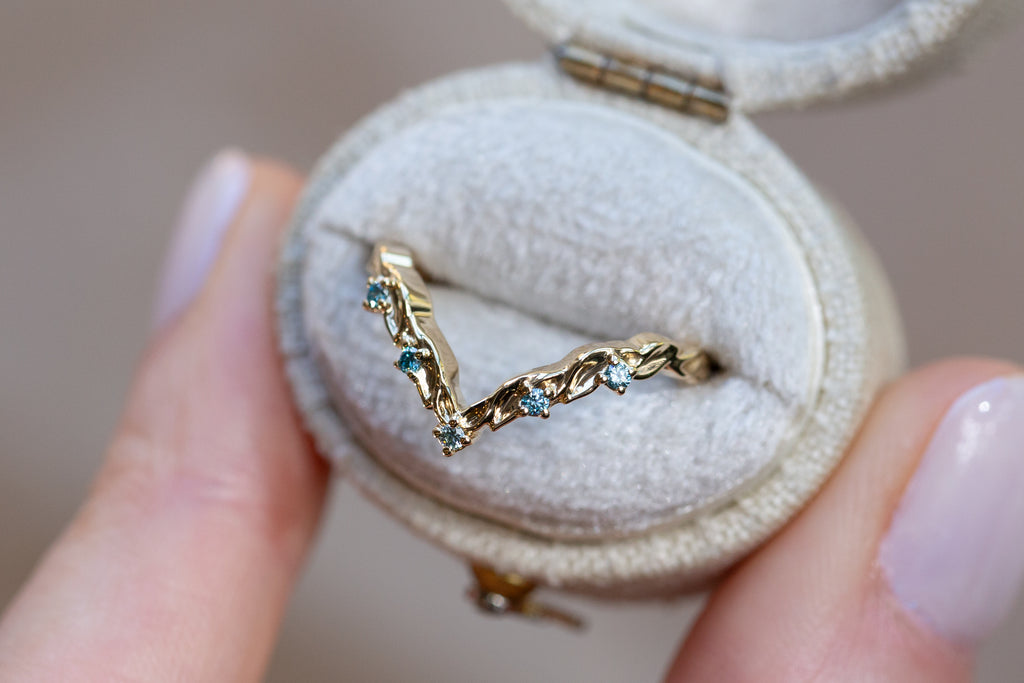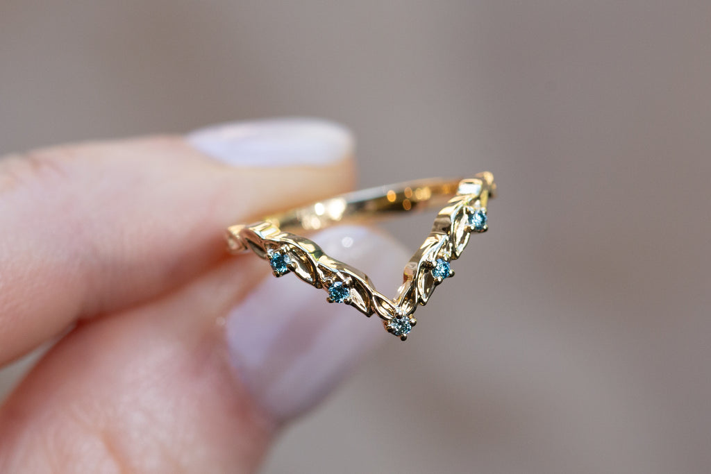 Ready to Ship - Size 5, 14k yellow gold Deep Chevron Leafy Wedding Band