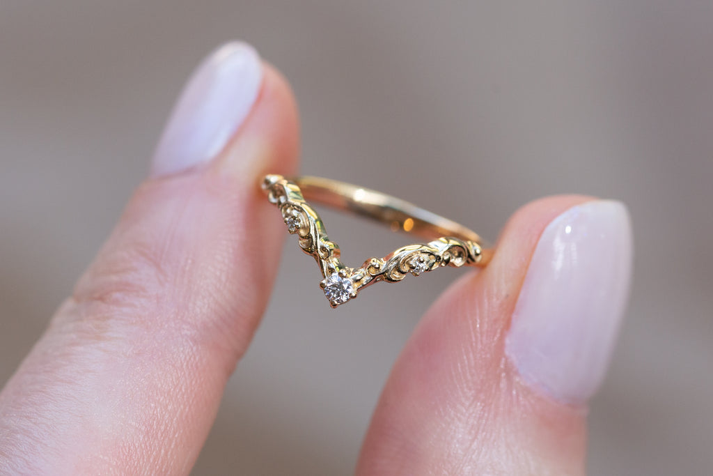 Ready to Ship - Size 5.25, 14k yellow gold Curved Filigree Wedding Band