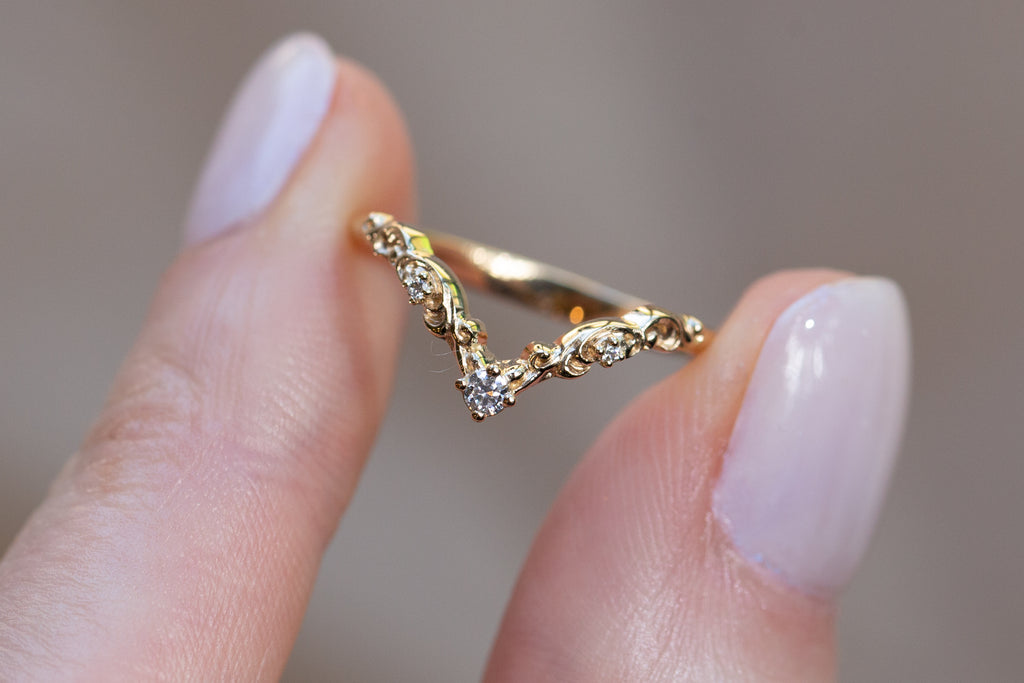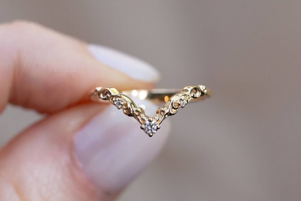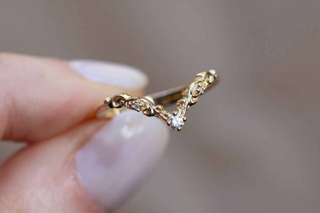 Ready to Ship - Size 5.5, 14k yellow gold Curved Filigree Wedding Band