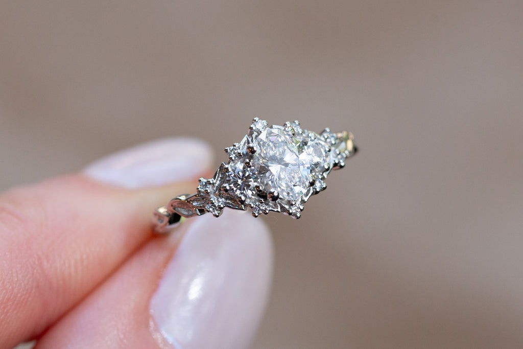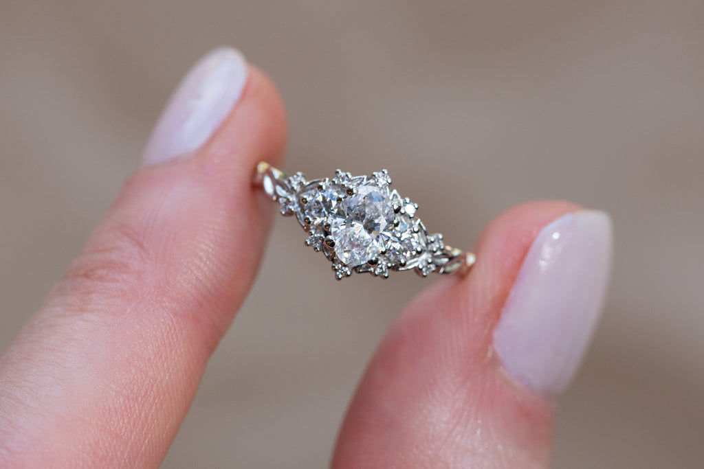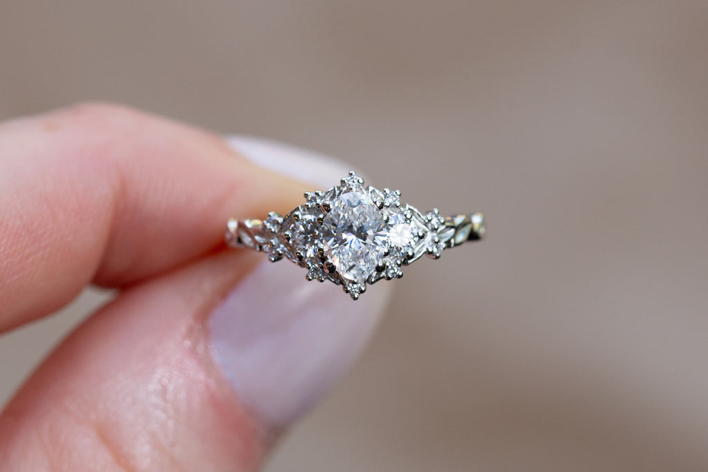 -Center: approx. 6x4mm oval lab diamond (D VVS1) IGI#668472749