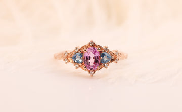 Ready to ship, Size 6 14k rose, Briar rose three stone