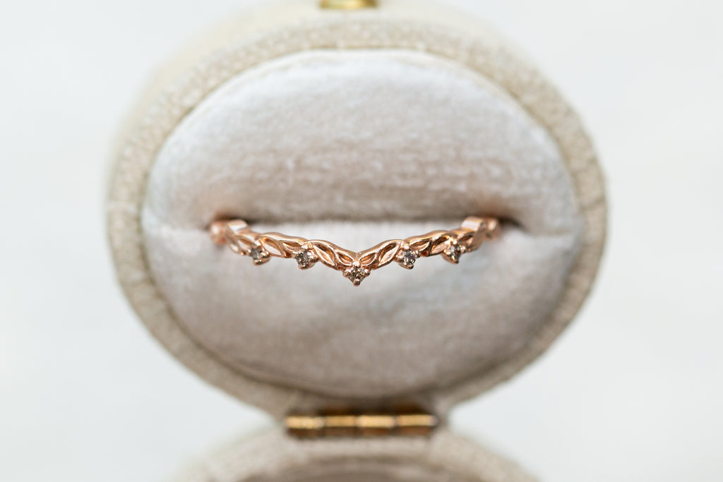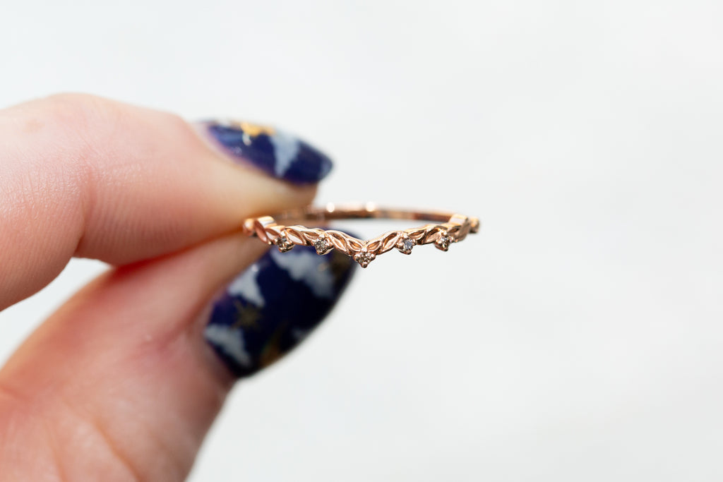 READY TO SHIP- Size 6, 14k rose gold Curved Leaf Wedding Band
