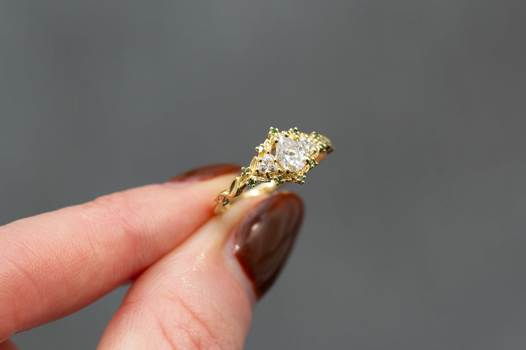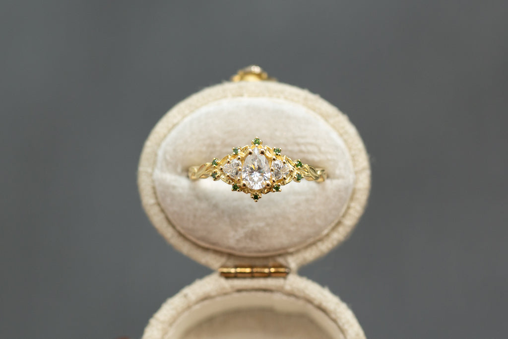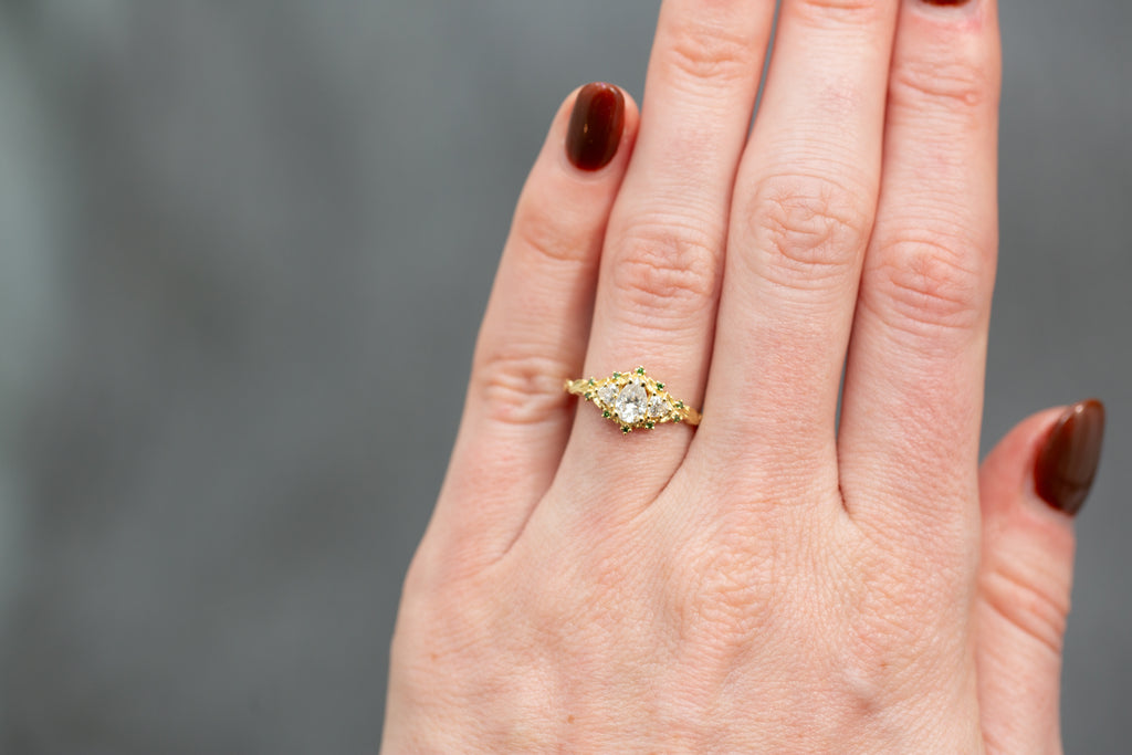 READY TO SHIP - Size 7, 18k Yellow Gold Briar Rose Three Stone