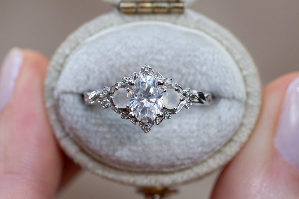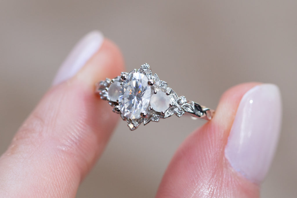 Center: 7x5mm oval moissanite